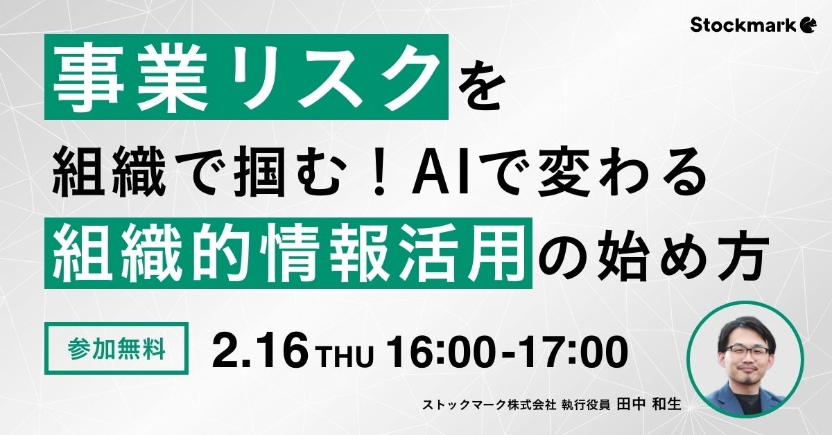 【2月16日(木) 無料セミナー】『事業リスクを組織で掴む! AIで変わる組織的情報活用の始め方』を開催(ストックマーク主催)
