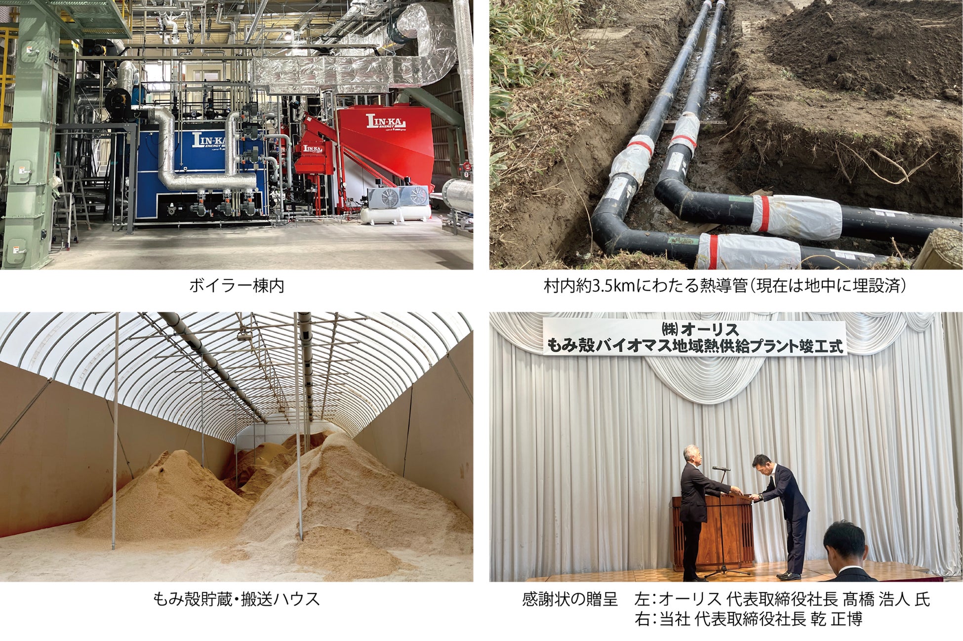 2. 地域資源の有効活用:村内で発生するもみ殻年間約14,000トンのうち年間約1,800トン使用し、バイオマスボイラーで熱エネルギー(90℃の温水)に転換。