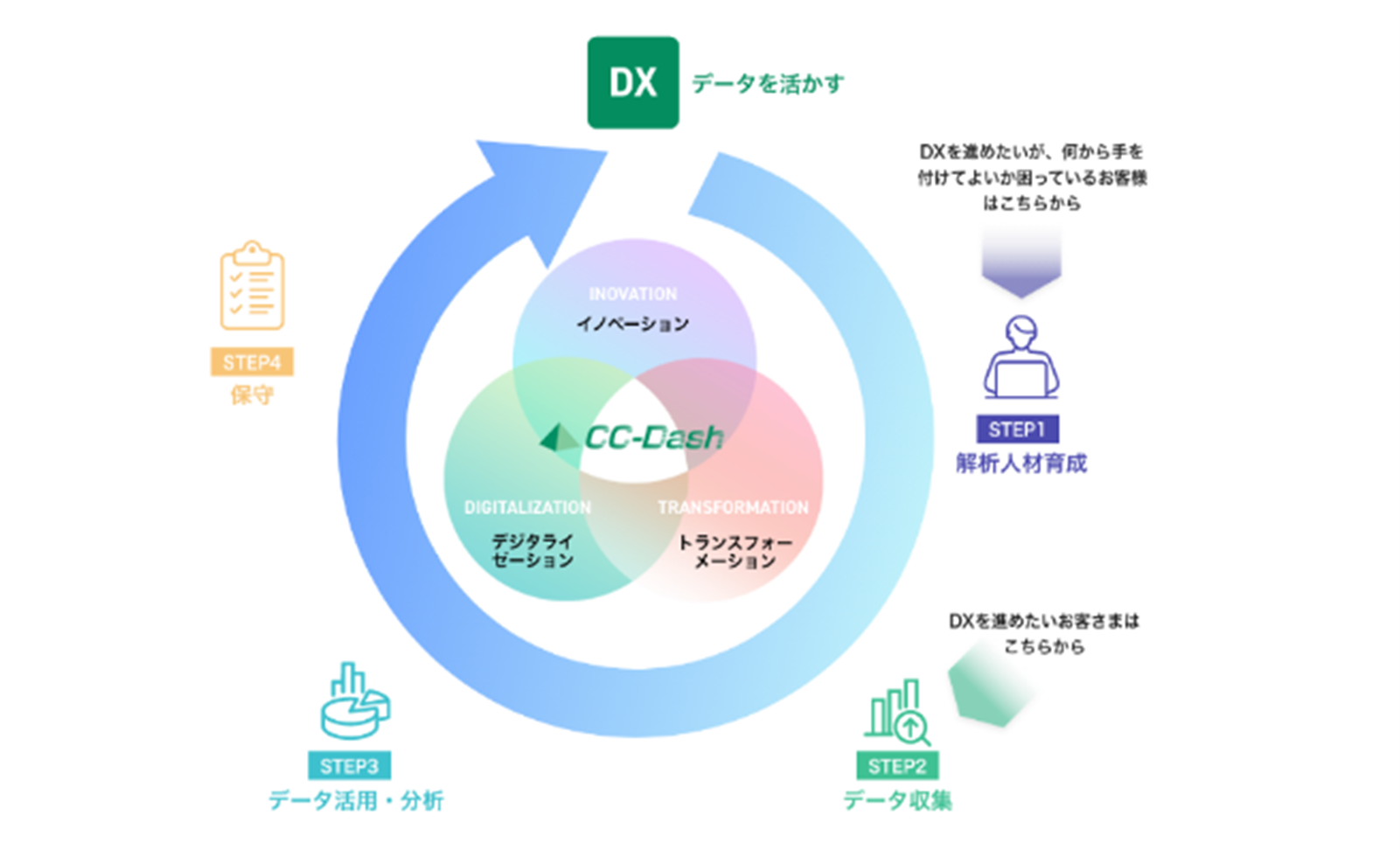 当社は、90年代よりコンサルティングやデータ分析基盤構築支援サービスを提供するなど、ビジネスの先駆者として、これまで約450社を越えるお客様のDXを支援してきました。これからも「CC-Dash」を拡充していくことにより、お客様の競争優位性の確立や持続的な成長に貢献してまいります。