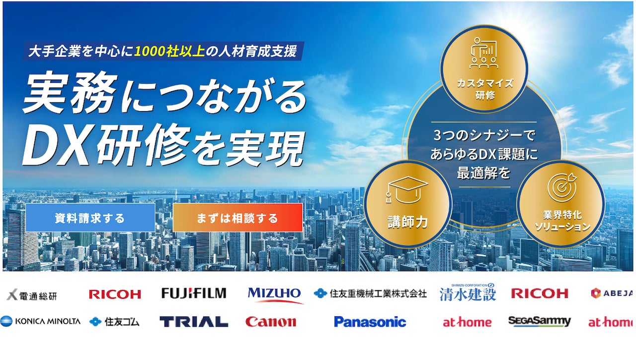 大手企業を中心に1000社を超えるクライアントへの支援実績があり、業界を牽引する様々な企業様から高い満足度を獲得しております。人材育成ロードマップを DX 人材類型ごとに設計しており、一気通貫した育成を提供しております。 -