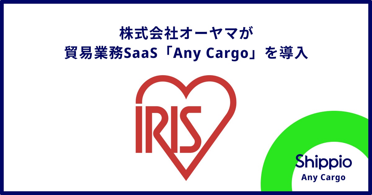 「理想の物流体験を社会に実装する」をミッションに国際物流DXを推進する株式会社Shippio(本社:東京都港区、代表取締役:佐藤 孝徳、以下Shippio)は、アイリスグループの輸出入を担う株式会社オーヤマ(本社:宮城県仙台市、代表取締役社長 大山 晃弘、以下オーヤマ)が、Shippioの提供する荷主企業向け貿易業務管理SaaS「Any Cargo」を導入したことをお知らせいたします。