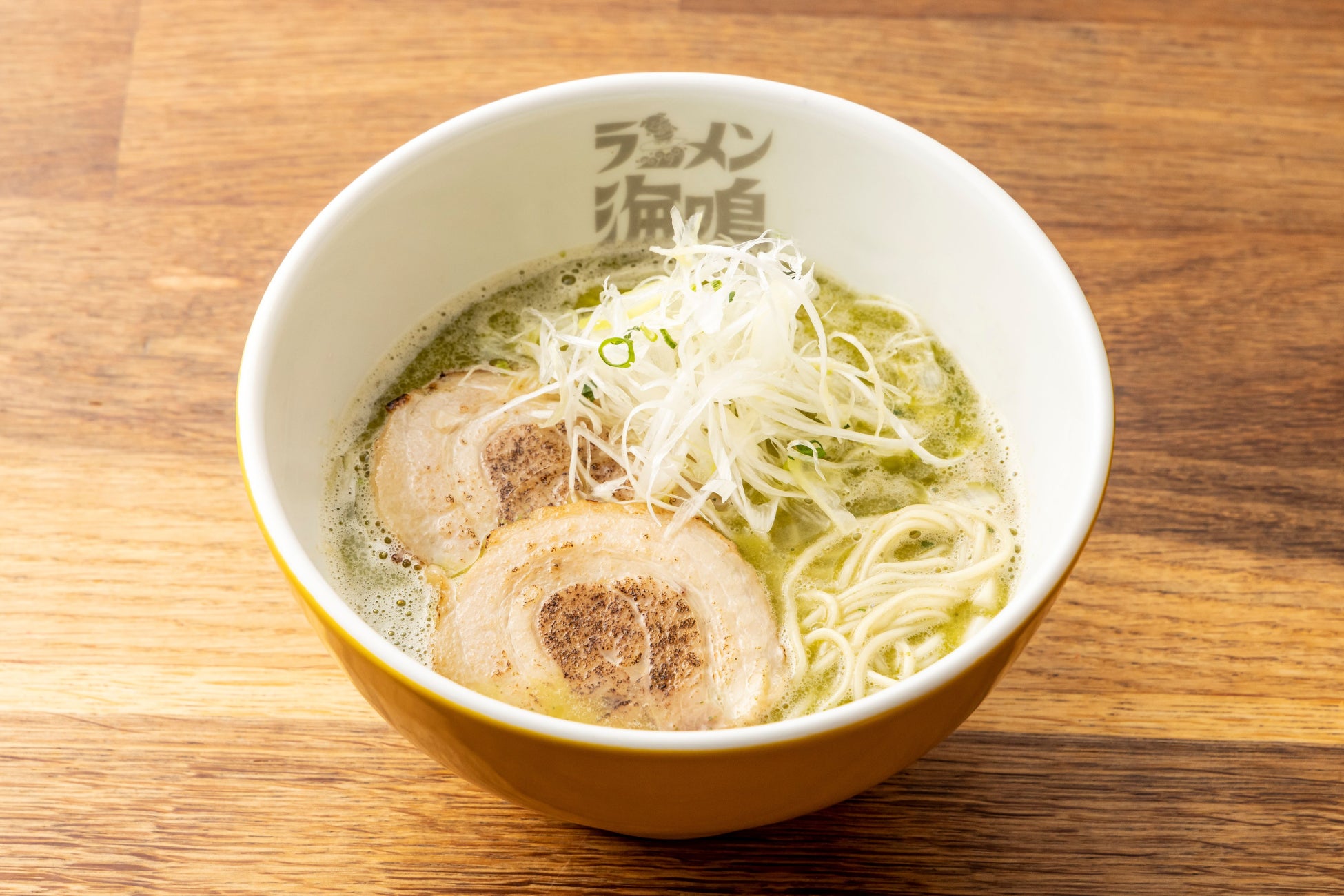 円やかでクリーミーなとんこつスープに厳選した7種の魚介をプラス! 海鳴の代名詞というべき、香り高く奥深い一杯です。