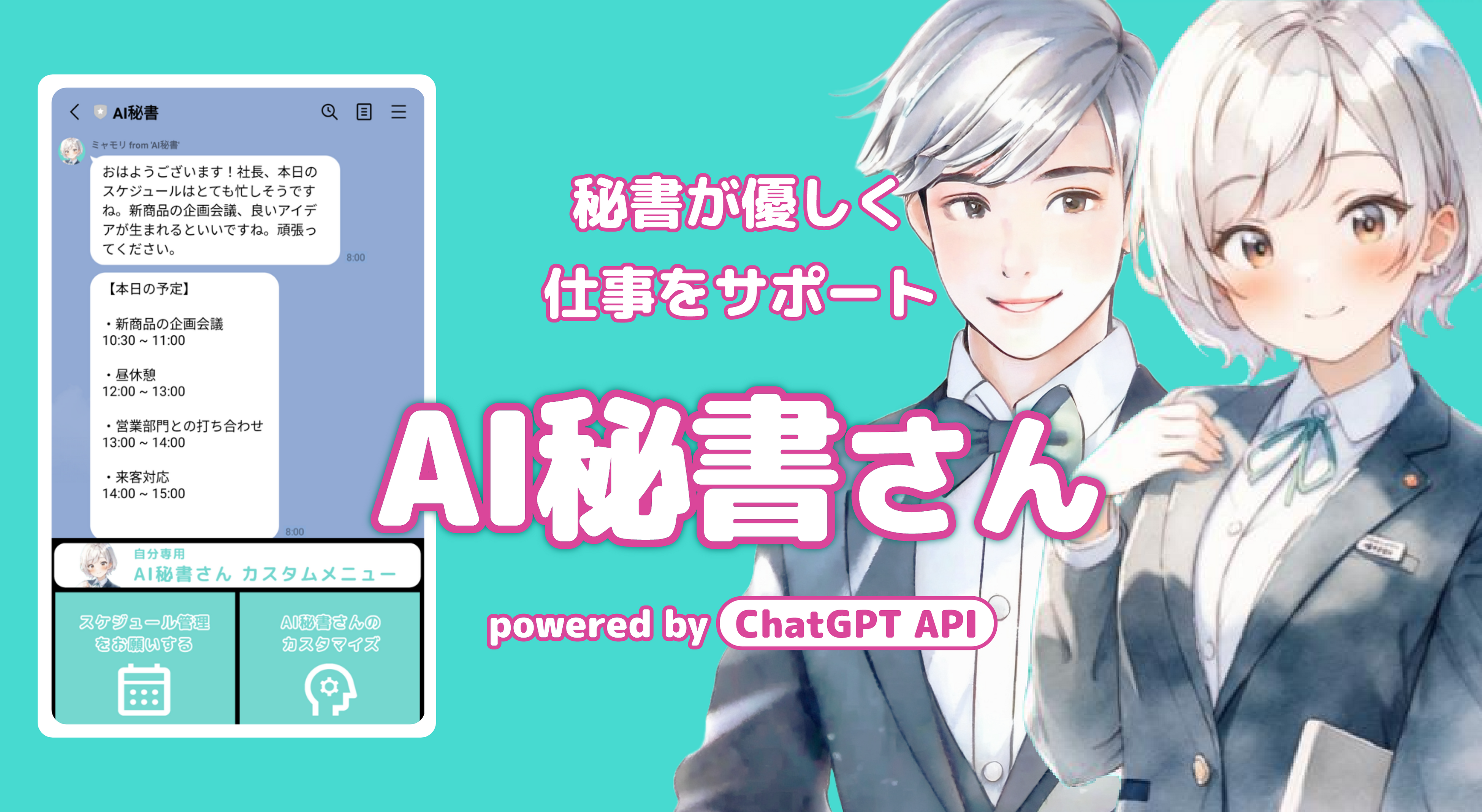 AI秘書さんは、ChatGPT連携キャラクターが専属秘書となり、相談相手になったりスケジュール管理をしてくれたりするサービスです。LINE公式アカウントに友だち登録するだけで、個性あるキャラクターと感情豊かにコミュニケーションすることができるほか、スケジュールを毎日共有、また相談や悩み事をチャットで聞いてくれます。「業務に追われて今日の予定を確認できない」「仕事で困ったことがあって誰かに相談したい」そんな時はAI秘書さんをぜひご活用ください。