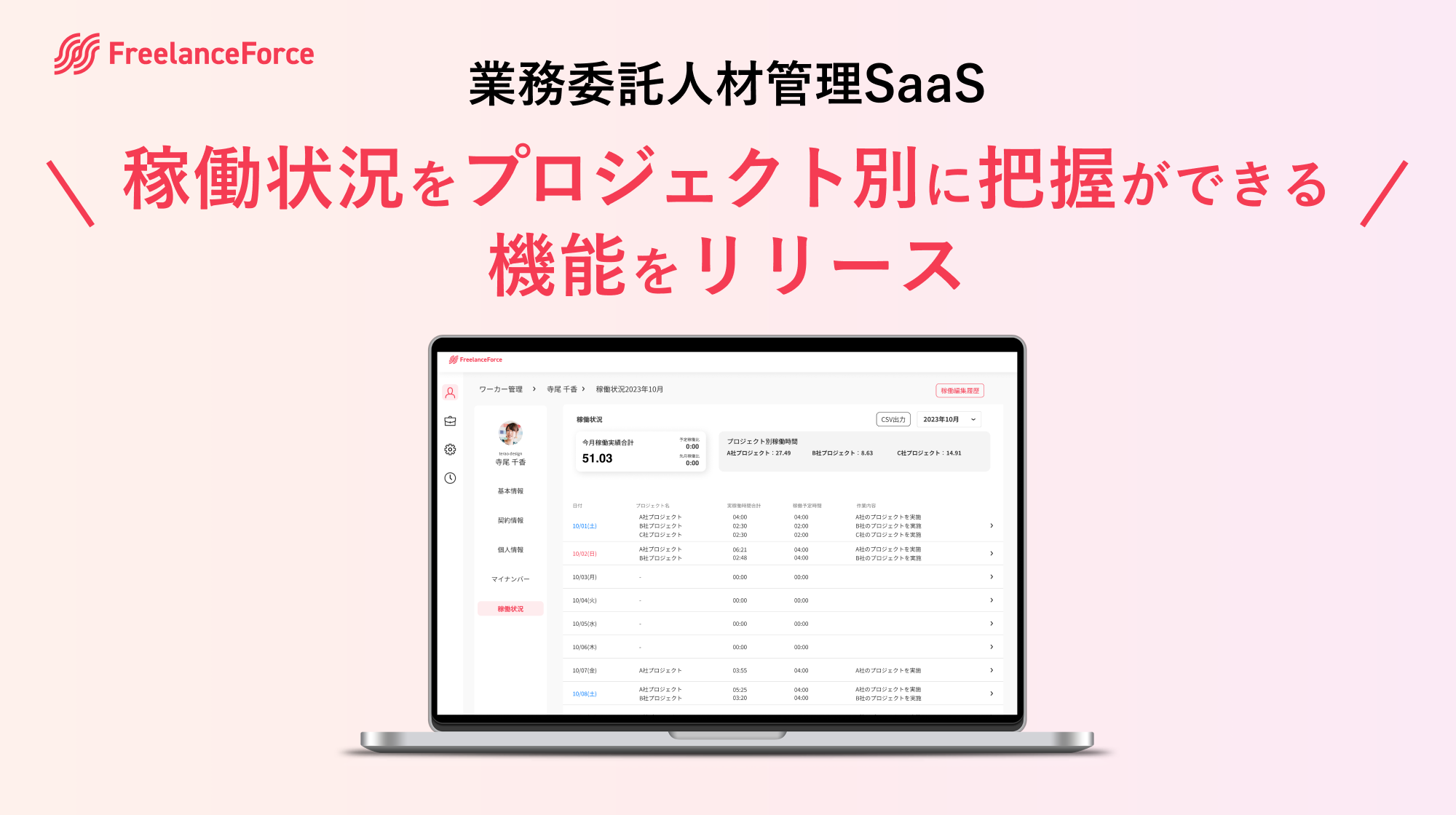 業務委託人材管理SaaS「フリーランスフォース」が、稼働記録をプロジェクト別に把握できる機能をリリース!