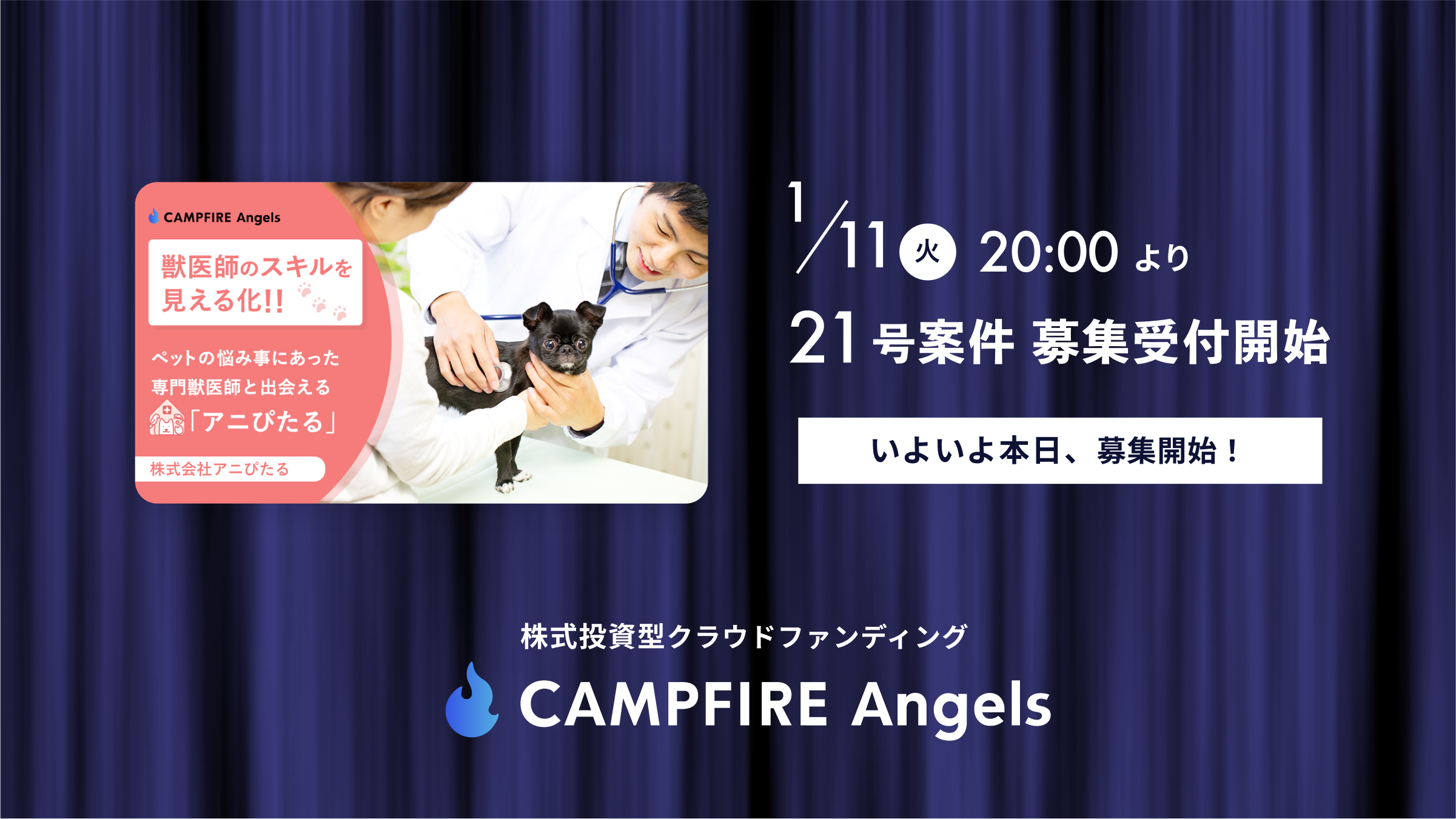 株式投資型クラウドファンディング「CAMPFIRE Angels」、本日1月11日(火)20:00より第21号プロジェクト募集開始