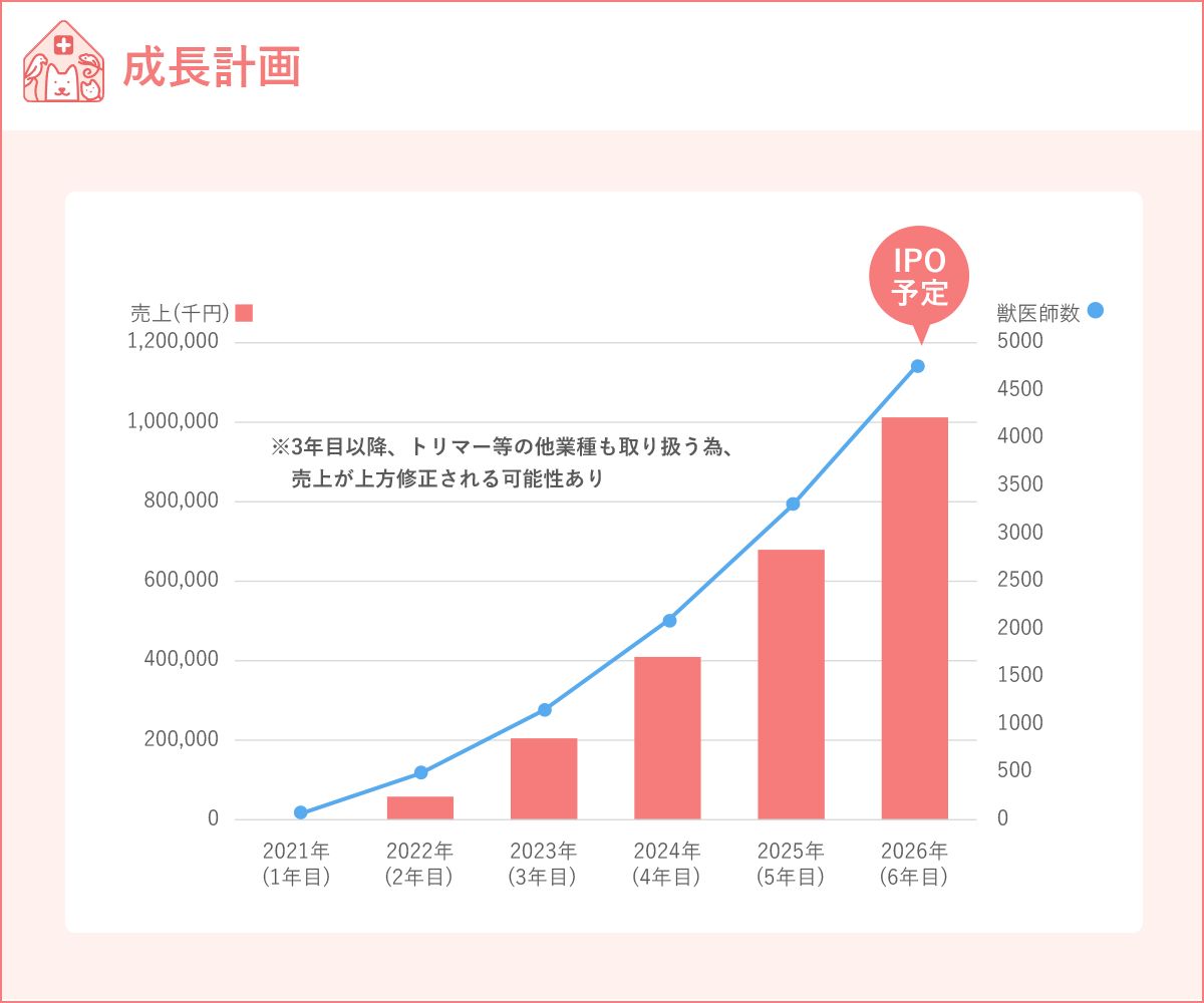 「アニぴたる」のサービスを通して「動物病院は獣医師の専門性で選ぶ」考えを広く一般化。2026年までに売上高約10億円、登録獣医師数約4,700人、登録飼い主数約77,000人を目指します。