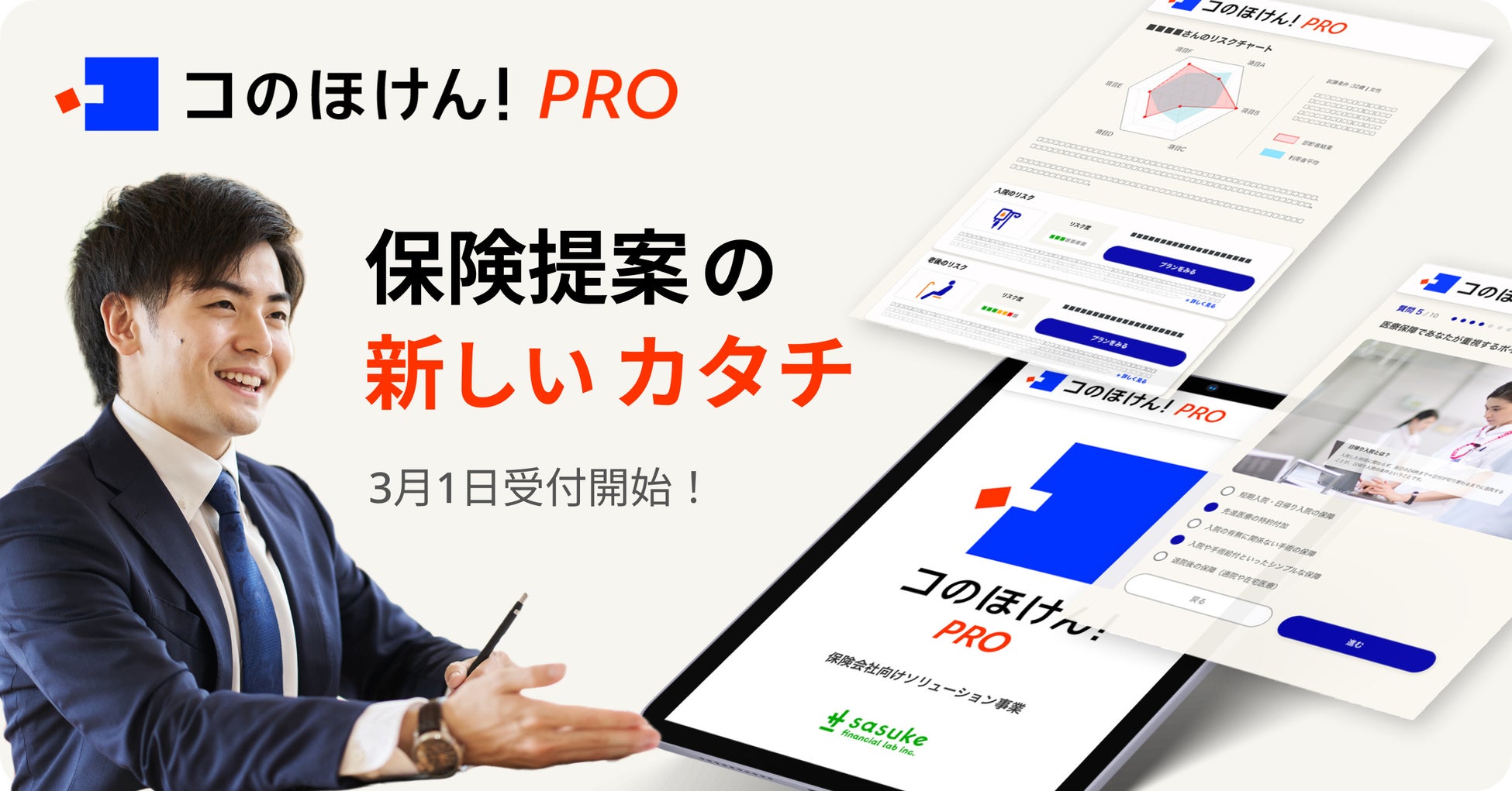 保険提案の新しいカタチ。客観的にリスクを可視化し、保険コンサルティングを深化させるSaaS型販売支援ソリューション「コのほけん!プロ」、3/1受付開始|Sasuke Financial Lab株式会社