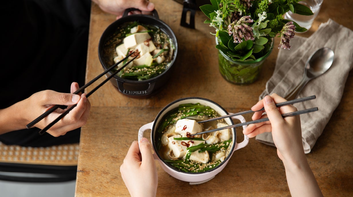 両手にすっぽり収まるサイズ感なので、調理後はそのまま食卓へ運んで器としてもご使用いただけます。2人暮らしの方は、ペアマグのように”ペア鍋“ として、一人一鍋で食卓を彩るのもおすすめです! これからの時期、ご自身用にはもちろん、クリスマスの贈り物や帰省時のお土産にもぴったり。セット販売ですと、通常販売価格より550円(税込)安価にご購入いただけます。この機会にぜひご活用ください。