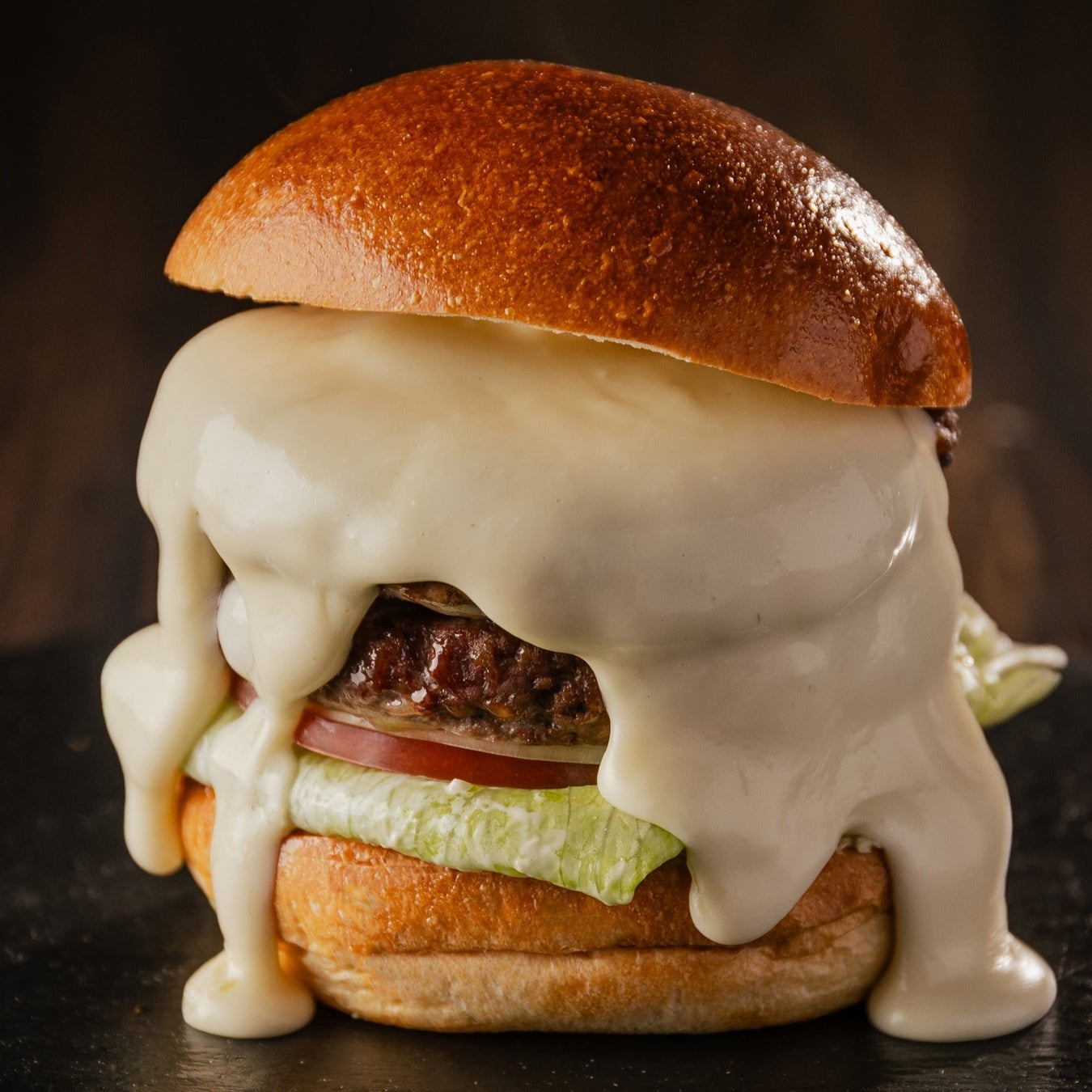 ドイツ版モッツアレラチーズとも呼ばれるステッペンチーズを使ったとろけるチーズソースをこれでもかとかけたバーガーウィーク定番メニューです。