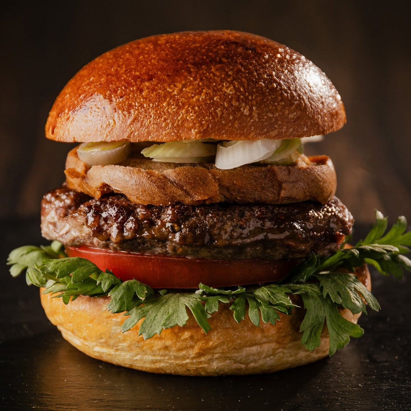 プライムビーフ100%のパティを贅沢に2枚乗せたボリューム満点バーガー。