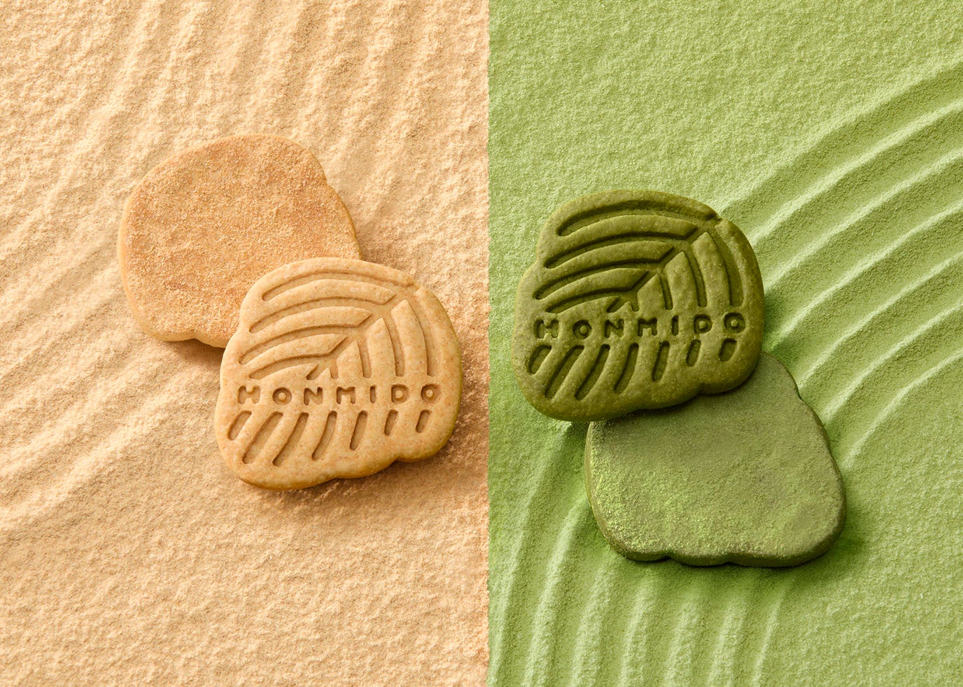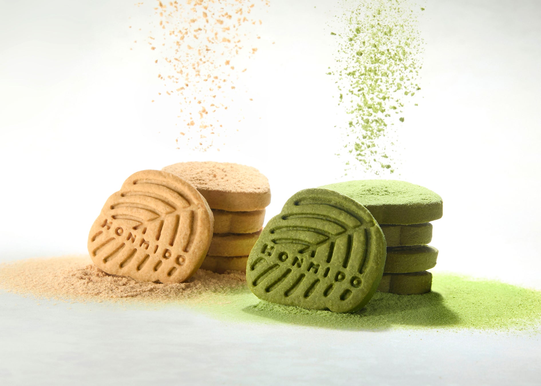 今までにない食感を追求したこのクッキーは、お口の中でほろりとほどける独特の軽やかさが特長です。一枚一枚丁寧にパウダーをまぶす“裏まぶし製法”を採用し、香ばしくやさしい甘さの〈きなこクッキー〉と、心地よい渋みが広がる〈抹茶クッキー〉に仕上げました。裏面にきめ細やかなきなこと抹茶のパウダーをまぶすことで、他にはない繊細な口どけとより豊かな食感を実現しています。