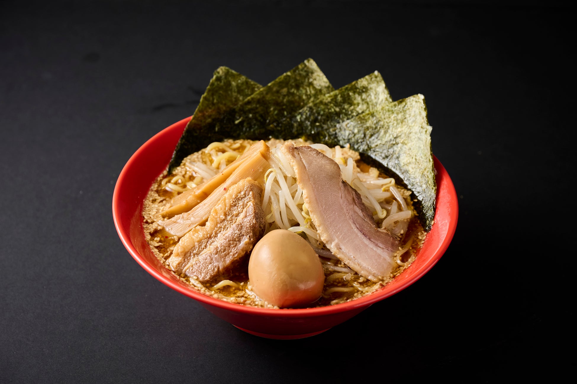 大きな角煮が目を引くばんからラーメンの代表とも言えるシグネチャーメニューは人気NO1商品。おいしさを引き出すために角煮ばんからに合った中細麺を使用しています。角煮をのせて完成するばんから基本の味は角煮の絶妙な甘味もポイント。熟成された甘味たっぷりの背脂スープと、こってりした旨味がファンを虜に