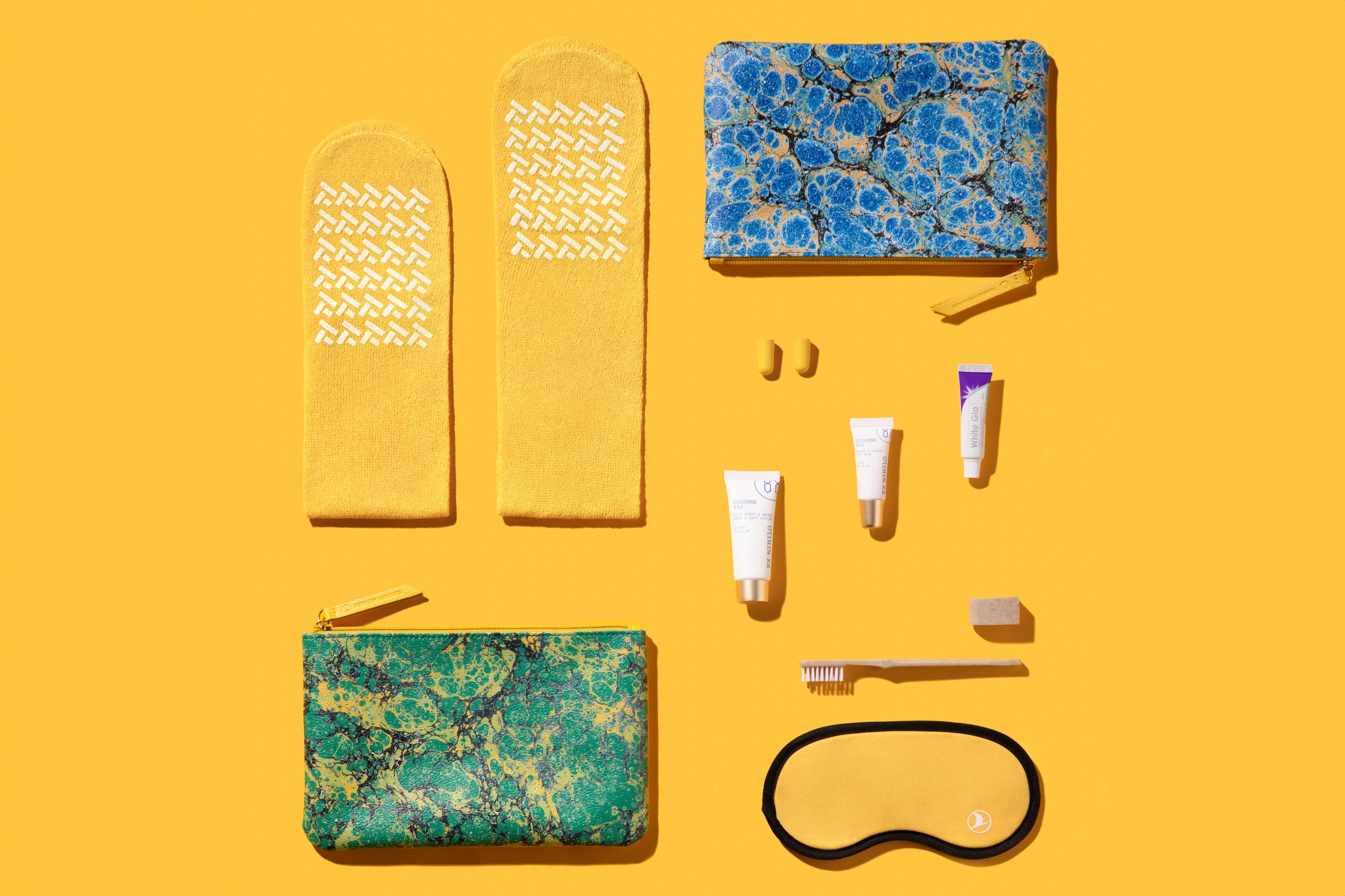 このコレクションには、トルコの高級フレグランスブランド「Ex Nihilo(エクス・ニヒロ)」が手掛けたハンド&ボディローションやリップバームが含まれており、上質な使い心地を約束します。さらに、ソックスやアイマスク、歯ブラシなどのアイテムには、リサイクル素材や生分解性のコーンスターチなど、環境に配慮した持続可能な素材が約80%使用されています。