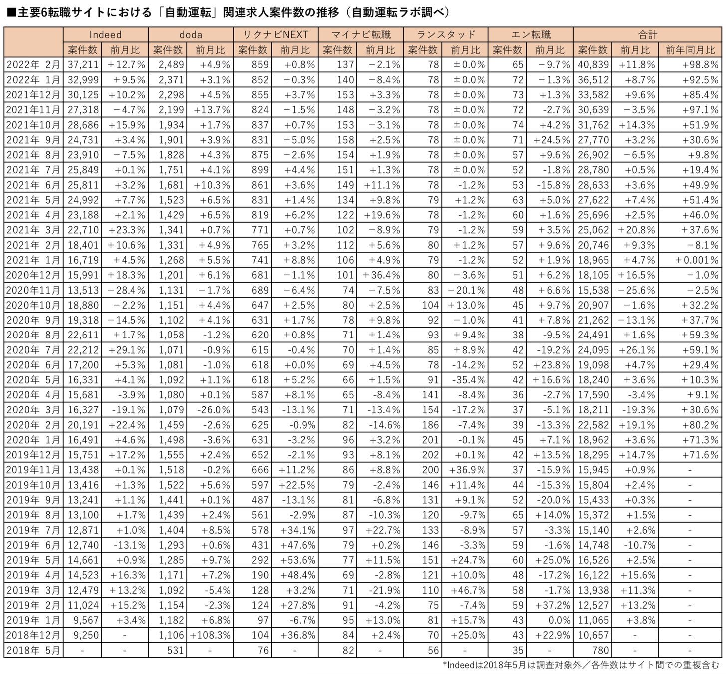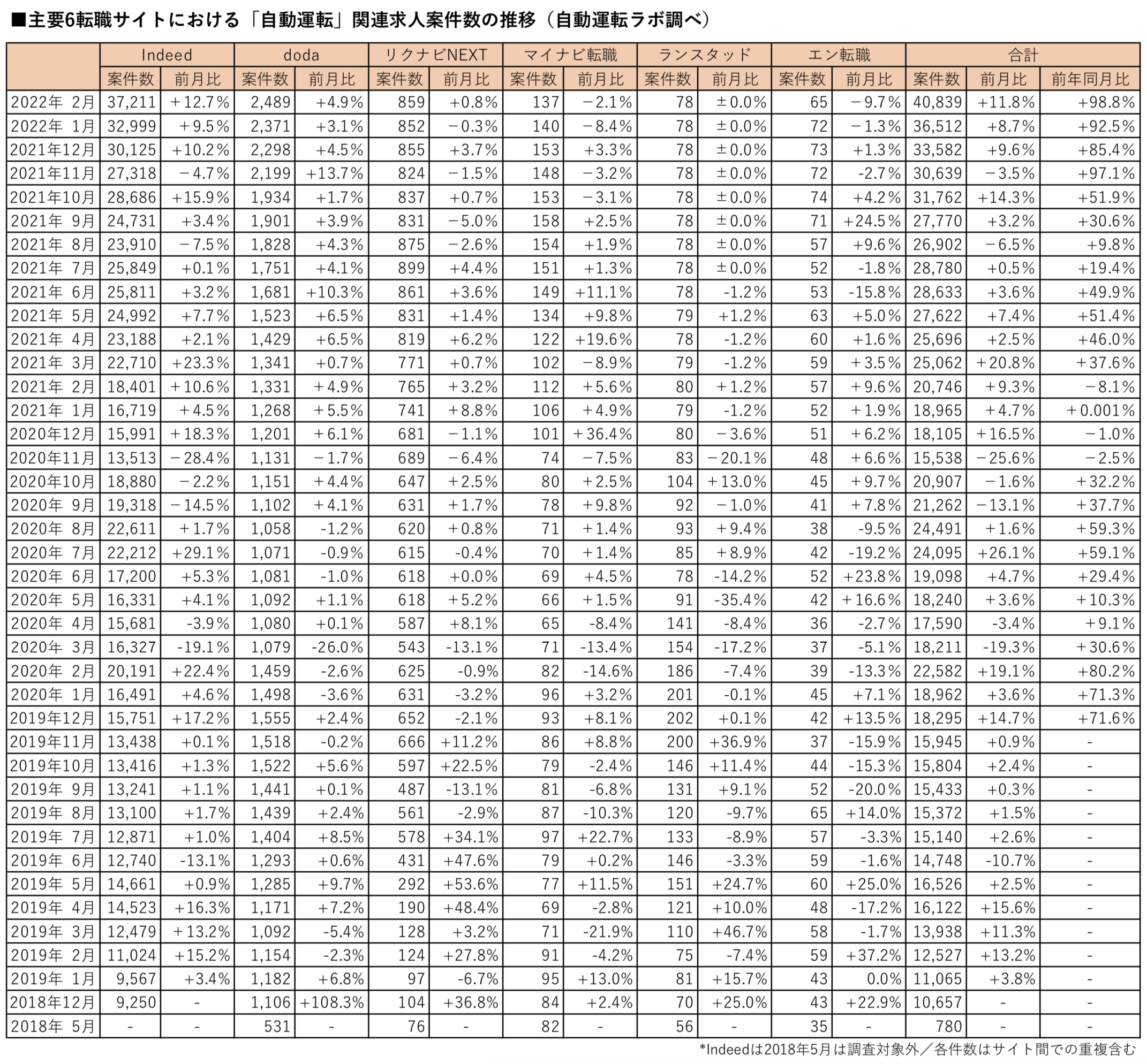 「自動運転」関連求人、初の4万件台(2022年2月版調査)- 自動運転ラボ