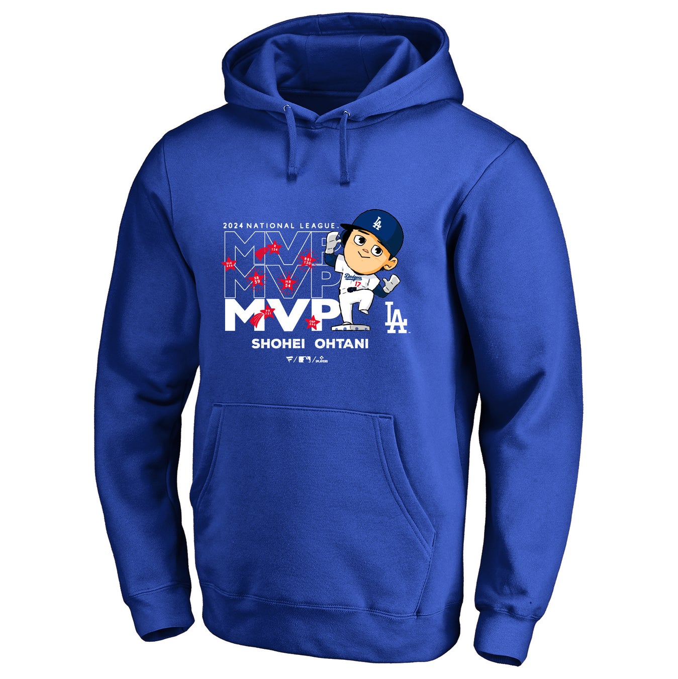 <Fanatics>ドジャース 大谷翔平 ナショナルリーグ MVP 2024 獲得記念イラストフーディー(ホワイト/ブルー)