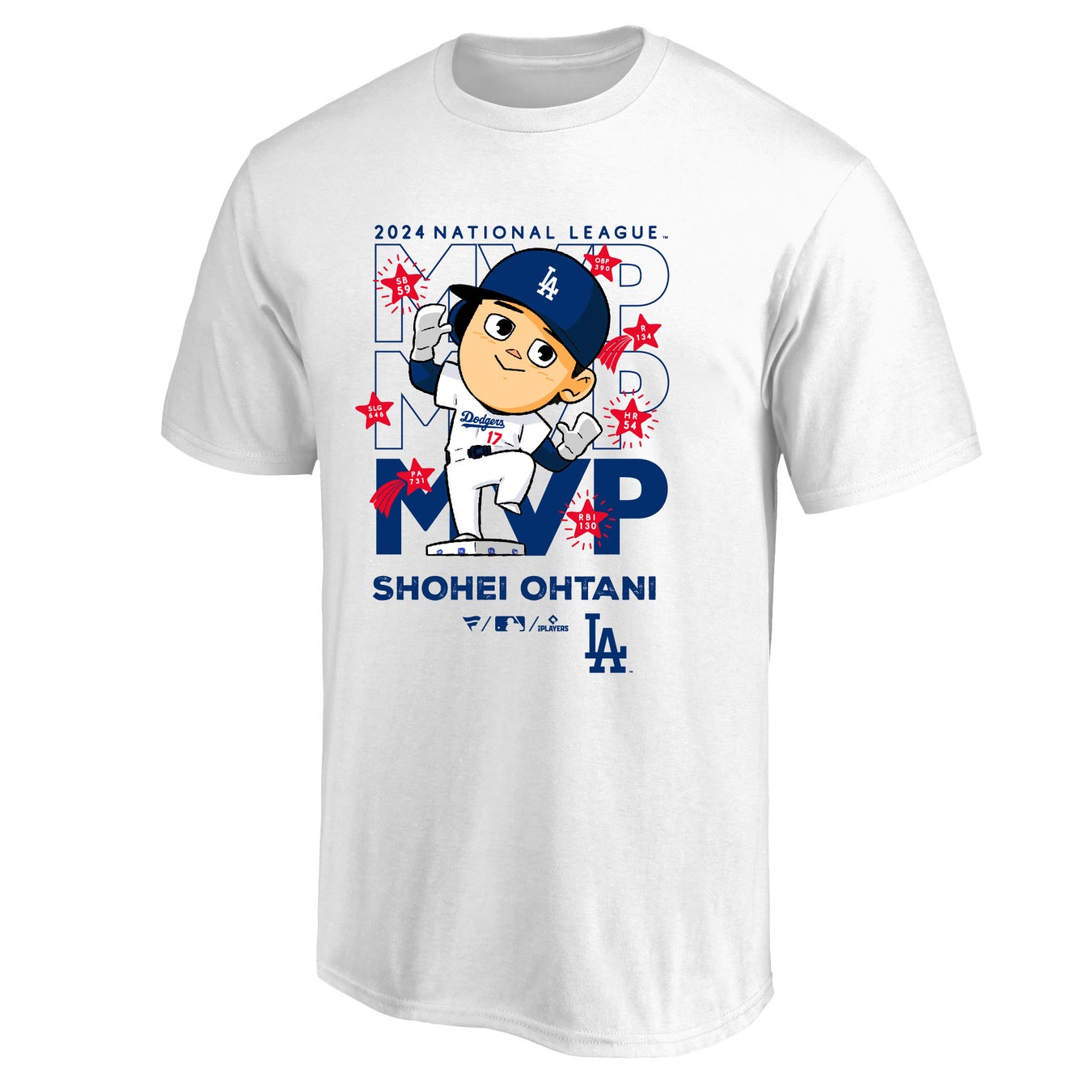 <Fanatics>ドジャース 大谷翔平 ナショナルリーグ MVP 2024 獲得記念イラストTシャツ(ホワイト/ブルー)
