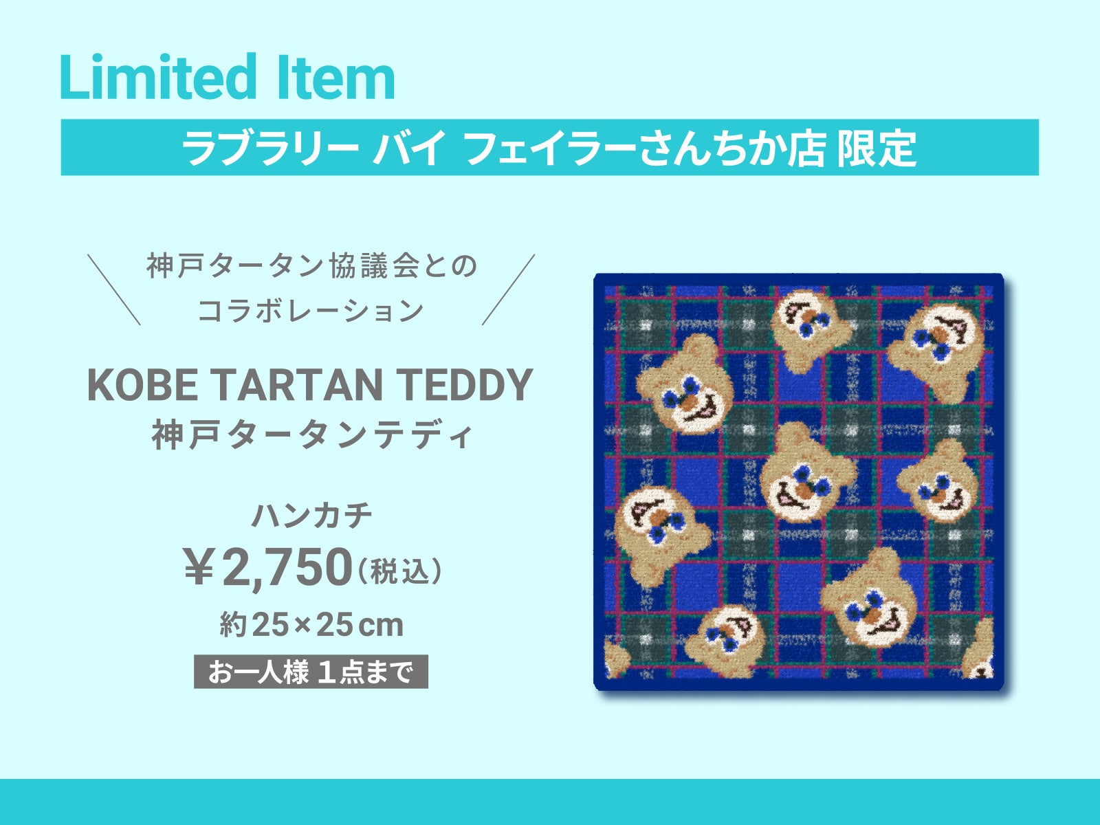 KOBE TARTAN TEDDY 神戸タータンテディ ハンカチ¥2,750(25×25cm) 購入点数制限:お一人様1点まで