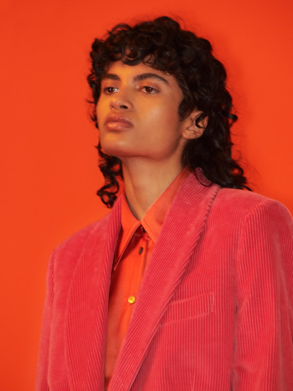 ウィメンズでは、ホットピンクのカシミアコーデュロイスーツ、ムーンリットパームフローラルがあしらわれたイブニングスーツ、ソーラーフローラルプリントのミディドレス、ジャカードのジグザグ柄トラウザーズと揃いのジャケット、レザーやシアリングのジャケット、ステムフローラル柄のシャツとトラウザーズなどを展開します。
