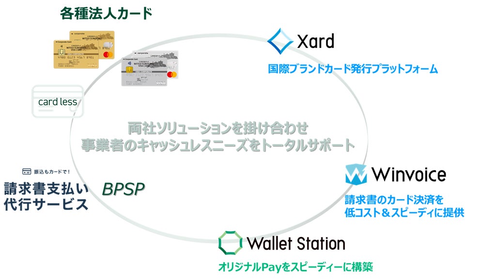 また、インフキュリオンが持つ次世代型カード発行プラットフォーム「Xard」の機能拡張性とSMBCグループの与信管理ノウハウを活かした新たな提携カードモデルの開発や、請求書支払いプラットフォーム「Winvoice(ウィンボイス)」と法人カードをシームレスに連携し一体的に提供する等、両社グループのプロダクト、ノウハウを連携することで、さらに利便性の高いプロダクトの開発に取り組みます。