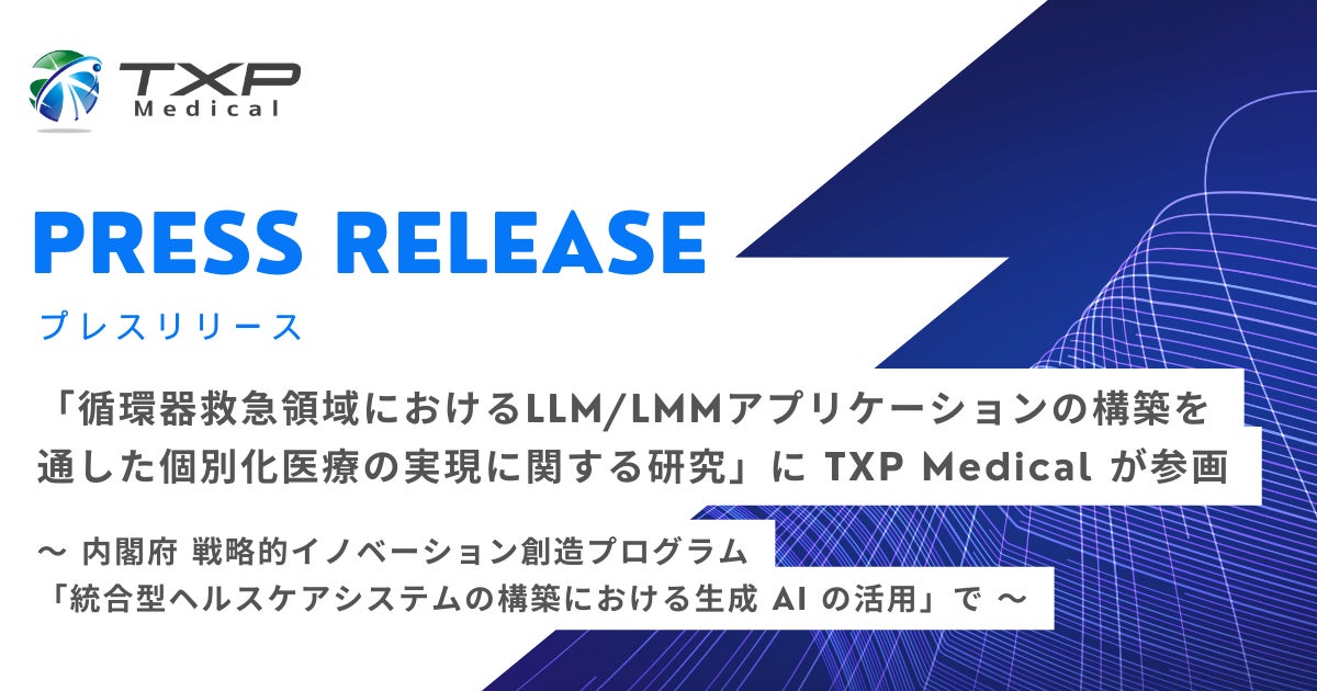 「循環器救急領域におけるLLM/LMMアプリケーションの構築を通した個別化医療の実現に関する研究」に TXP Medical が参画