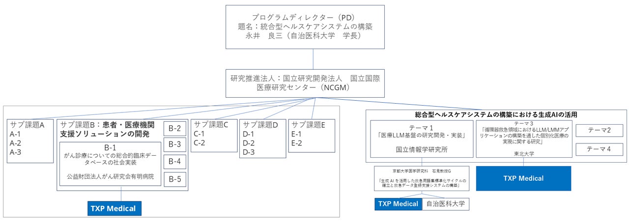 TXP Medical 株式会社(代表取締役 CEO:園生 智弘、以下 TXP Medical)は、内閣府の「戦略的イノベーション創造プログラム(SIP)』第3期の課題「統合型ヘルスケアシステムの構築※」における『統合型ヘルスケアシステムの構築における生成AI の活用 テーマ3「ソリューション/アプリケーション開発」』にて採択された東北大学 高等研究機構 未来型医療創成センター/東北メディカル・メガバンク機構(研究開発責任者:荻島 創一教授)の共同研究開発機関の1つとして選定されました。