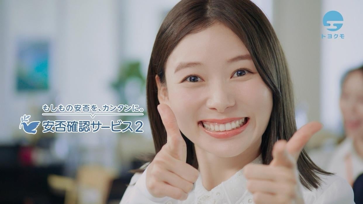 朝日奈央さんが出演するトヨクモのCMは今回で第3弾。前回のCMでトヨクモを導入し、その良さを実感した朝日さん。今回は他の人たちにも広げていくため、安否確認サービスをどれにしていいか悩んでいる企業に潜入!40代の男性役員として会社に潜り込み、経営者にトヨクモをすすめるというCMになっています。男性役員を演じる朝日さんの熱演ぶりや、変身シーン。そして、ラストの明るく可愛らしい踊りにも、ご注目ください!