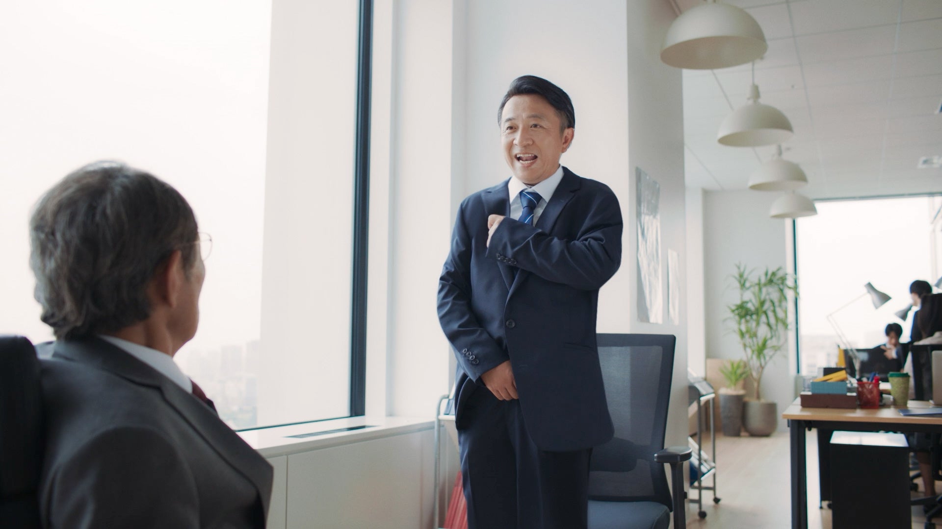 いつも楽しいCMを制作されるトヨクモさんと、今年もお仕事ができて嬉しく思います!「今年のCMはどんなストーリーになるのかな?」と思っていましたが、まさかの男性役員に変身という展開でびっくり!私の声のトーンと男性役員の表情が妙にマッチしたユーモアある作品に仕上がってますので、是非CMをご覧ください!