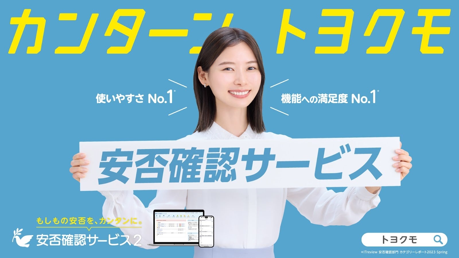 とある企業の経営者が、安否確認サービスを導入しようとWEBサイトを見ながら悩んでいる様子。すると、隣にいた男性役員が「トヨクモの安否確認サービス」をおすすめしてくるのですが…なんと声が女性!?驚く経営者!そして、急に立ちあがった男性役員が服を剥ぎ取ると…なんと中から朝日奈央さんが登場!安否確認サービスのトヨクモを推薦していくというストーリーになっています。各種No.1の評価を取っているからこそ、オススメしたくなるサービスのようです。