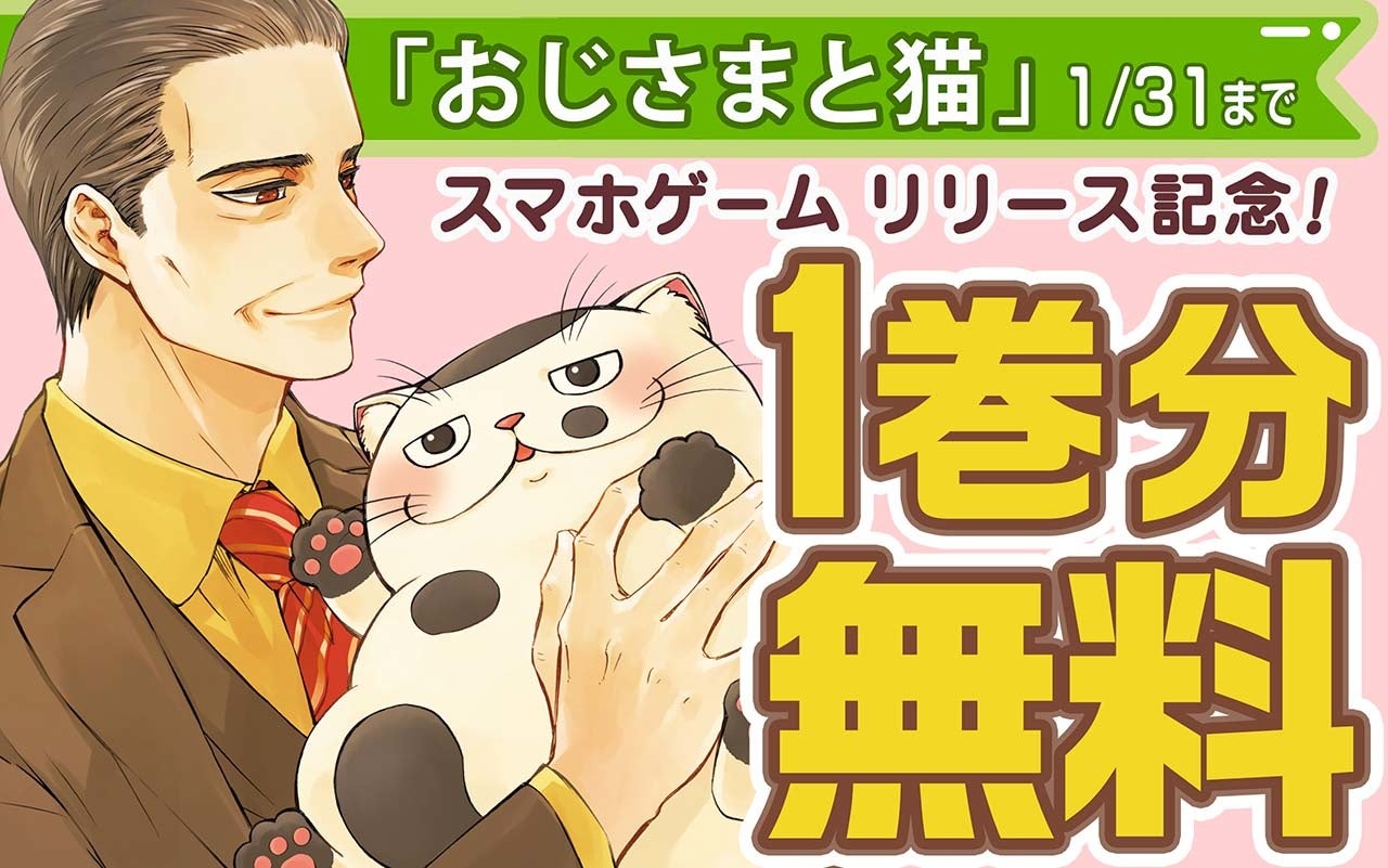 「おじさまと猫」マンガ1巻分が、スクエニのまんがアプリ「ガンガンONLINE」、「マンガUP!」にて、無料で読めるキャンペーンを開催します。