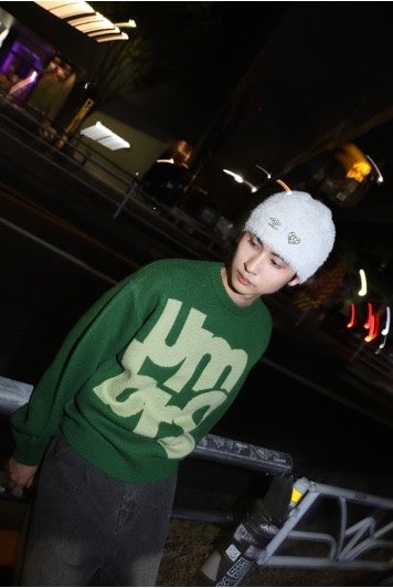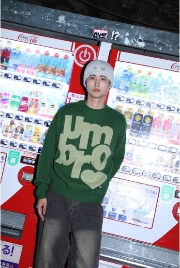 フロントのumbroロゴがインパクトのあるニットアイテム。