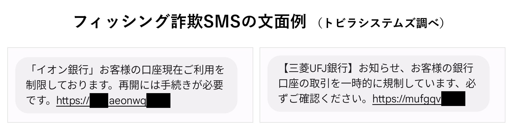 ○「イオン銀行」「三菱UFJ銀行」をかたるフィッシング詐欺SMSが目立つ