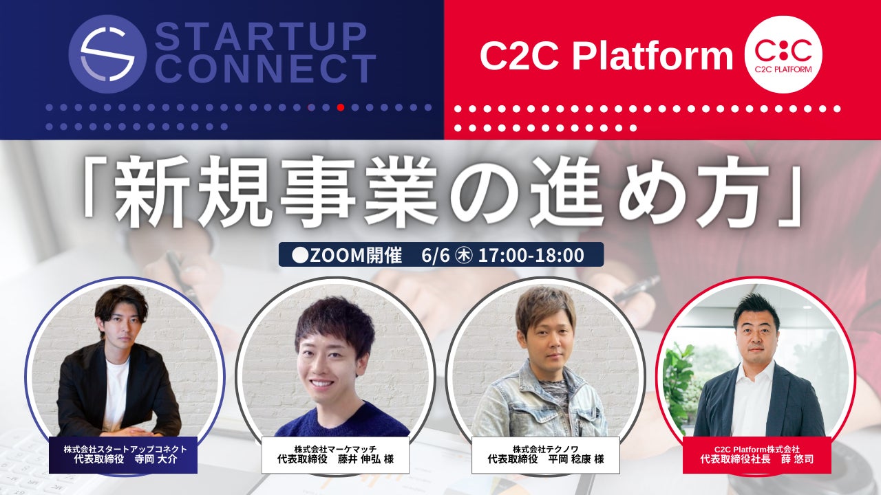 ダイレクトマッチング事業のトータルソリューションを提供するC2C Platform株式会社(本社:東京都千代田区、代表取締役:薛 悠司、村上 英夫、以下C2C社)と株式会社スタートアップコネクト(本社:東京都港区、代表取締役:寺岡大介、以下スタコネ社)は2024年6月6日(木)に無料ウェビナー「新規事業の進め方」を開催いたします。