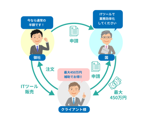 ITツール購入者(エンドユーザー)から、ITベンダー/IT導入支援事業者(ITベンダー)の補助金申請サポートまで、一括でサポート