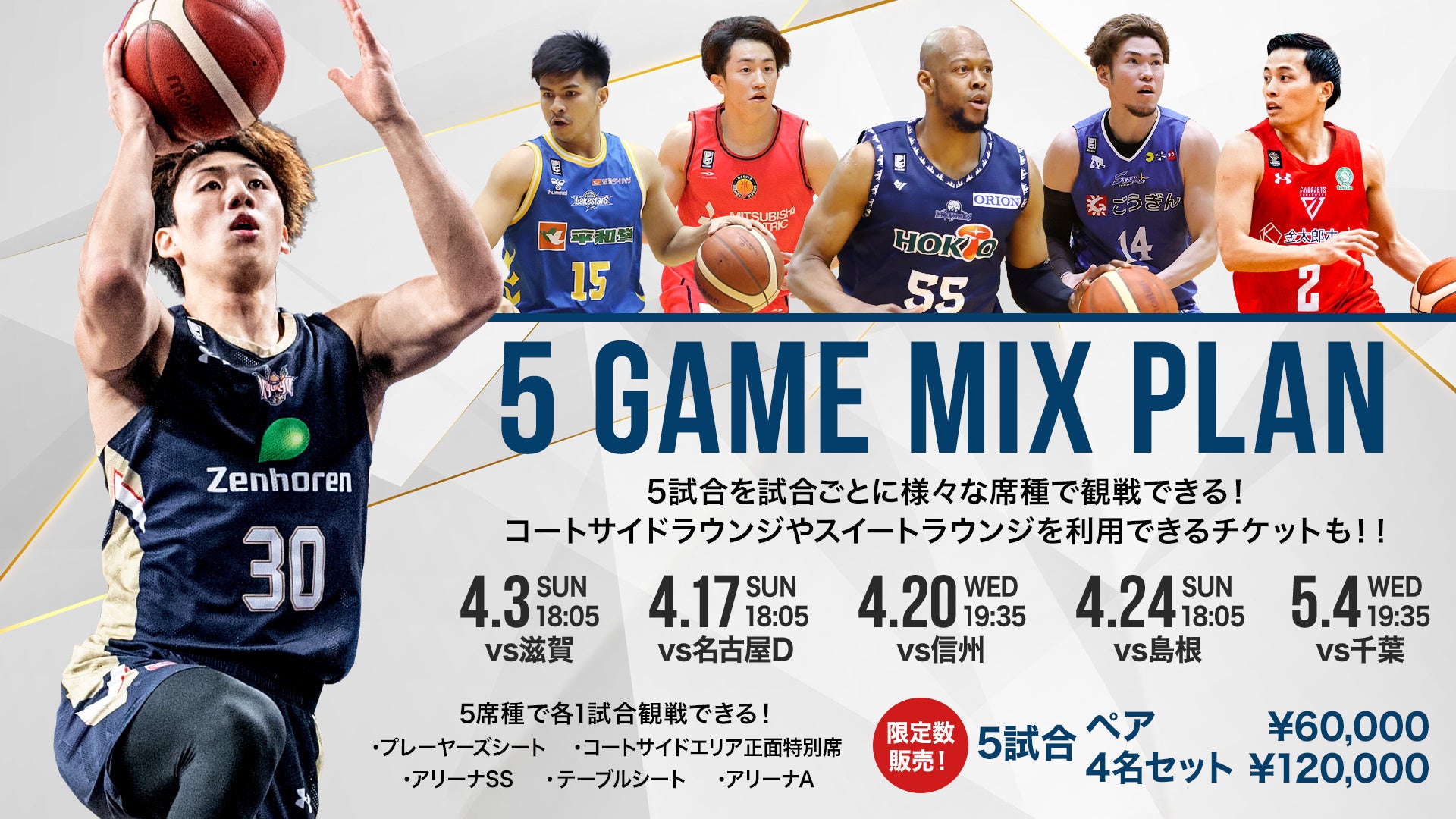 ・注目の対戦相手との試合を毎試合違う席種で観戦できる「5 GAME MIX PLAN」を限定販売!