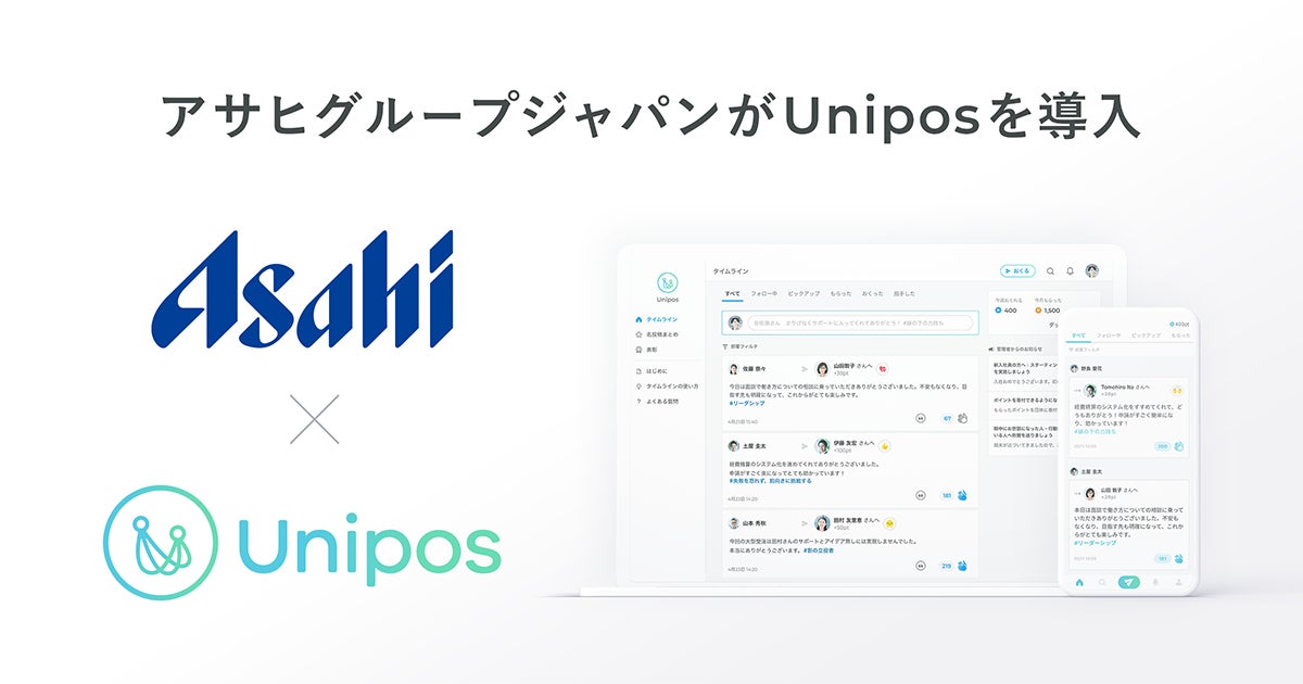 心理的安全性を高め、挑戦できる風土をつくるHRテック事業「ピアボーナス®︎Unipos」(以下、Unipos)を提供するUnipos株式会社(本社:東京都渋谷区、代表取締役社長CEO:田中弦)は、2023年2月よりアサヒグループジャパン株式会社(本社:東京都墨田区、代表取締役社長兼CEO:濱田賢司)がUniposを全社員に導入したことをお知らせします。