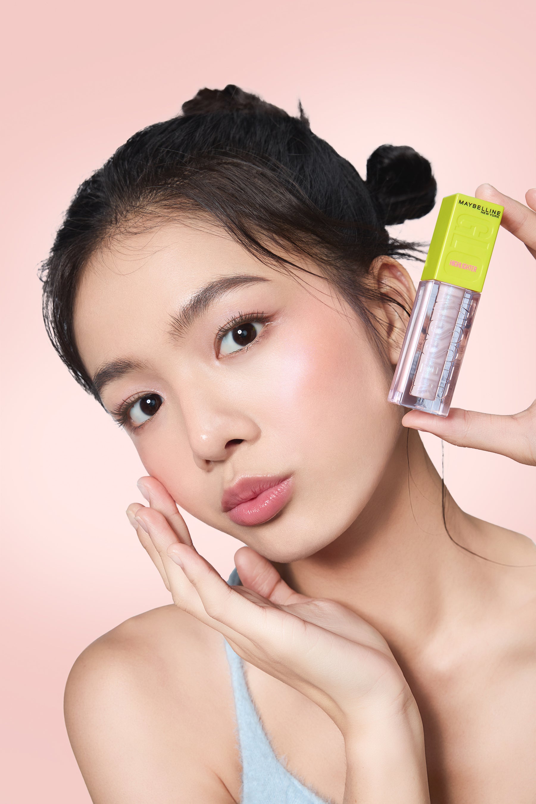 そこでメイベリン ニューヨークは、まるで火照った*²ような血色感と、うるおいのあるツヤ感を一本で実現する、史上初*¹のリキッドチーク「GLOKISSER」を開発しました。また、同時に発売される偏光ラメがぎっしり配合されたハイライターは、単体でも、チークと組み合わせて使っても、透明感のあるツヤ肌を演出できます。