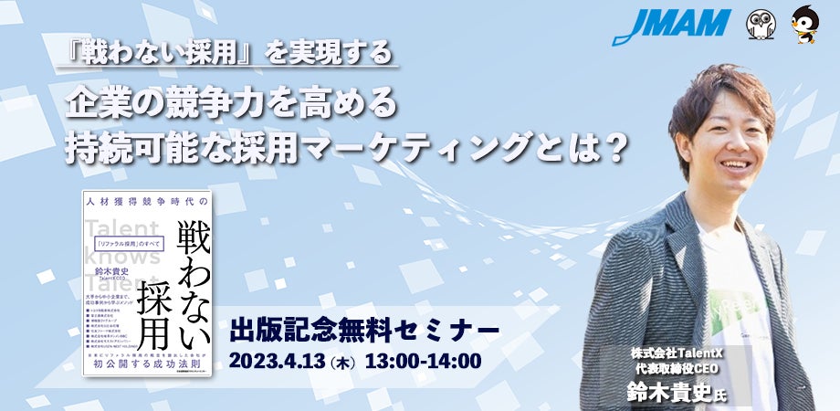 自社の採用活動を変革させたい経営者・採用担当者に向けた書籍『人材獲得競争時代の戦わない採用 「リファラル採用」のすべて』の出版を記念して、「戦わない採用」と「採用マーケティング」をテーマにしたオンラインセミナーを開催いたします。