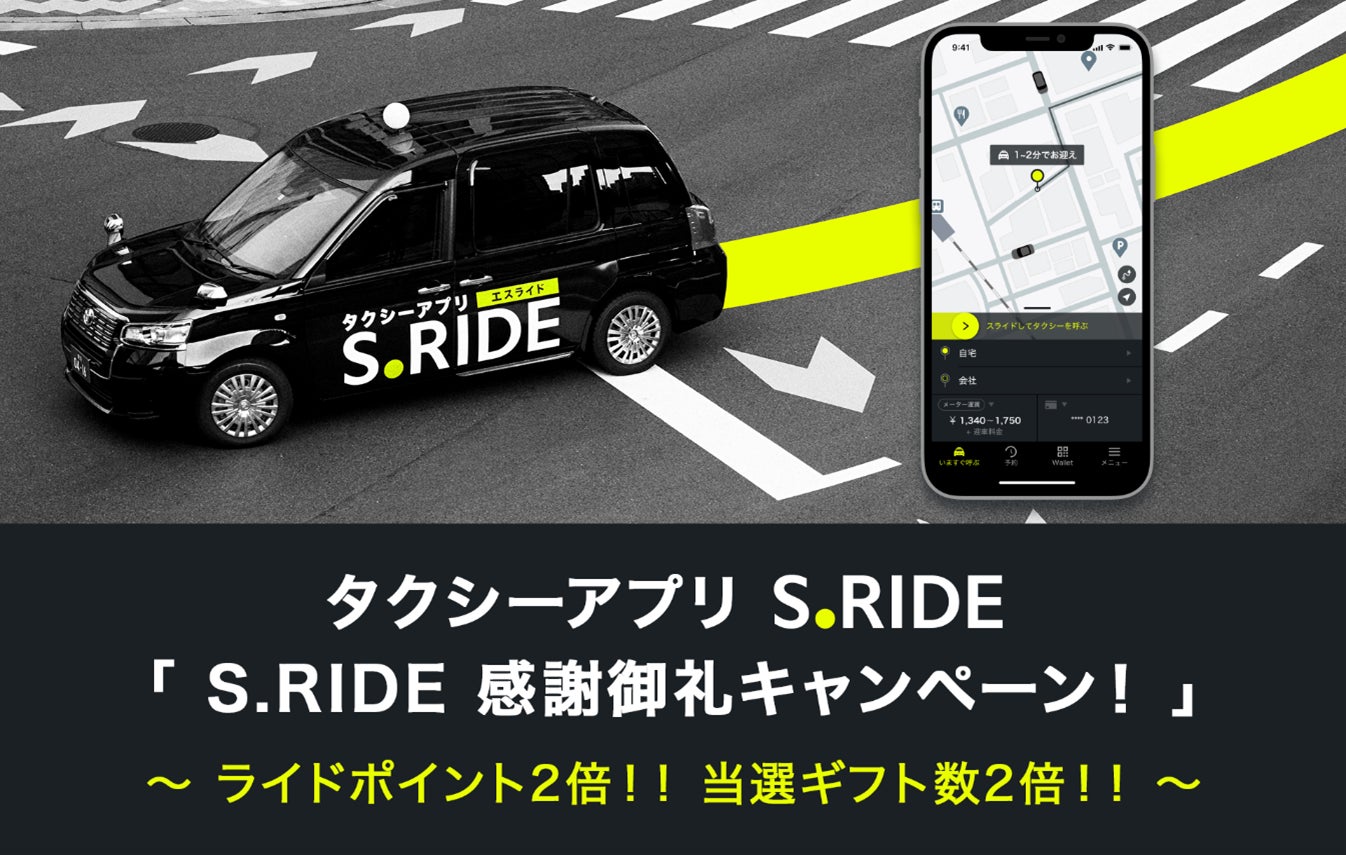 S.RIDE株式会社(本社:東京都台東区、代表取締役:西浦賢治、以下、S.RIDE)は、タクシーアプリ“S.RIDE”は2022年4月から3ヵ月連続、月間配車件数※が過去最高件数を更新しました。ご利用いただいているお客様に感謝の気持ちをこめて、2022年7月1日より「S.RIDE 感謝御礼キャンペーン!」を実施します。S.RIDEでタクシーを配車・乗車(S.RIDE WALLETでの乗車除く)すると通常は、1ライドポイントを獲得できますが、キャンペーン期間中は、2倍の2ライドポイントになります。また“S.RIDEプレミアム”会員のお客様には、4倍の4ライドポイントを付与いたします。ライドポイントは、10ポイント貯まると抽選券が発行され、その場で豪華ギフトが当たる抽選が実施いただけます。新たにS.RIDE賞としてソニー製ヘッドホンLinkBuds S(WF-LS900N)を加えるとともに、豪華ギフトの当選数も通常の2倍なります。