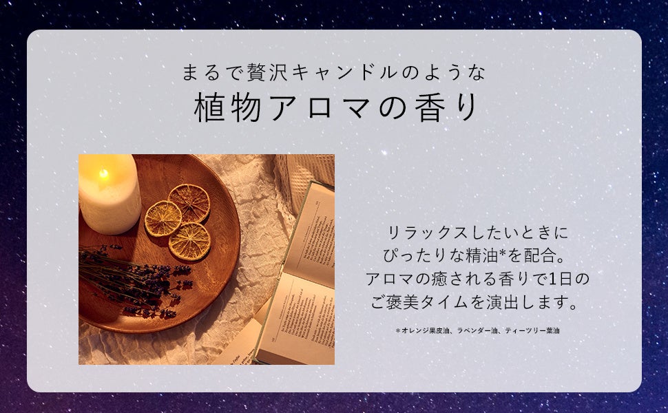 アロマの癒される香りで、1日のご褒美タイムを演出します。