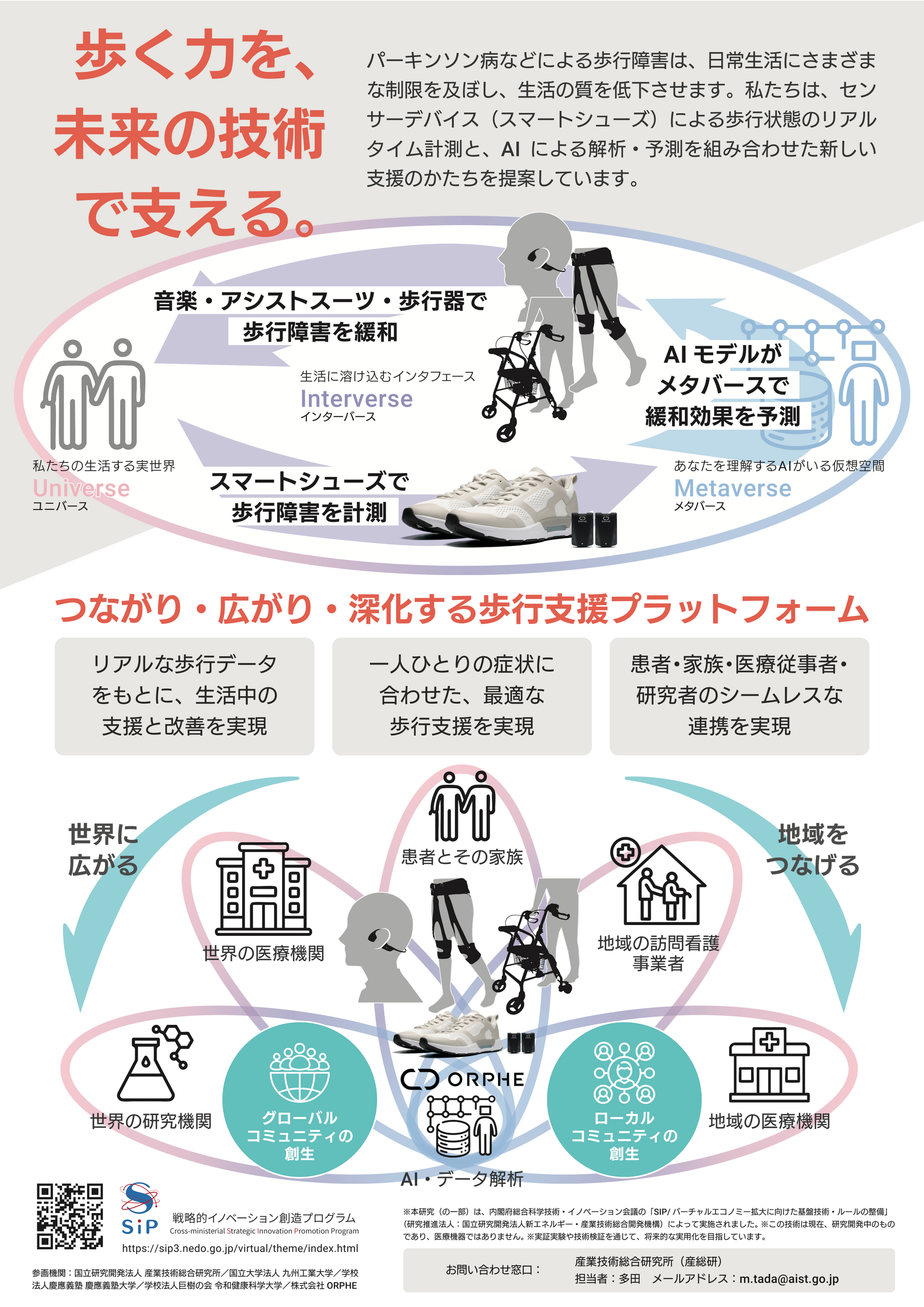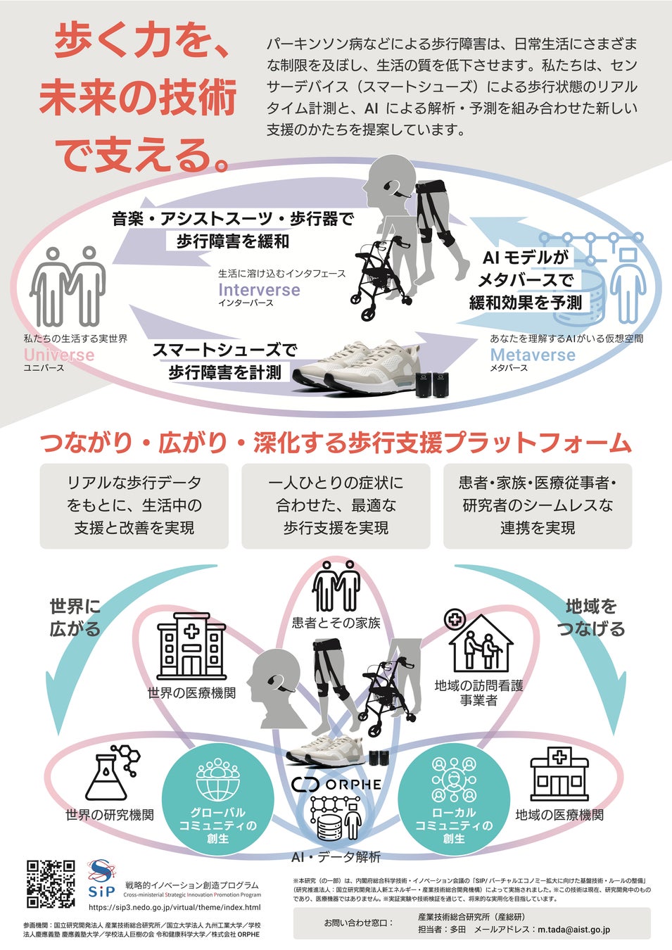 ■体性感覚・聴覚インタラクションに基づく運動支援プラットフォームの構築とパーキンソン病患者の歩行障害緩和のための活用(国立研究開発法人 産業技術総合研究所 / 国立大学法人九州工業大学 / 学校法人慶應義塾 / 学校法人巨樹の会 令和健康科学大学 / 株式会社ORPHE)
