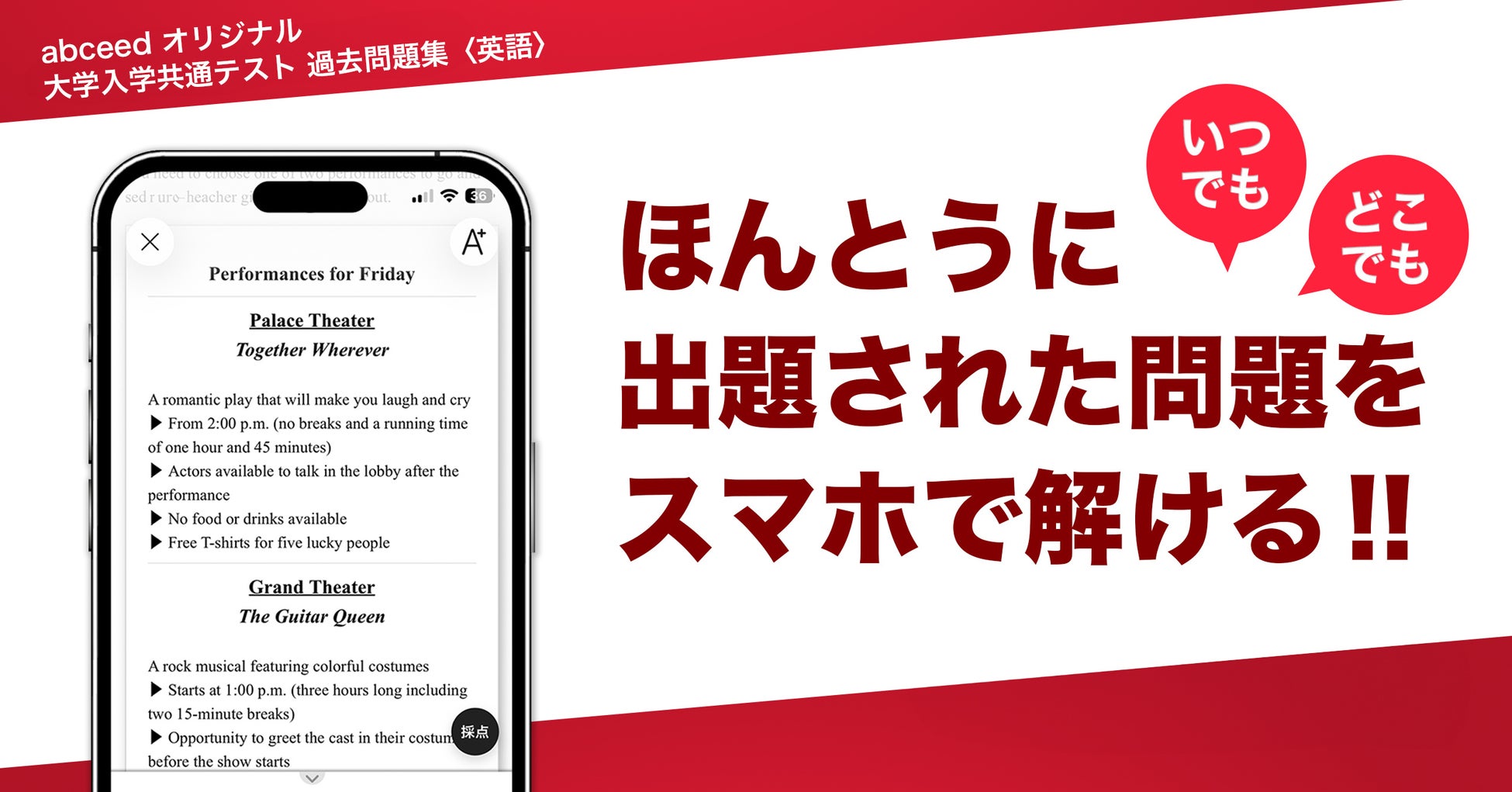 株式会社Globee(所在地:東京都港区、代表取締役社長 幾嶋 研三郎、以下Globee)が提供する、AI英語学習アプリ「abceed(エービーシード)」にて、〈大学入学共通テスト〉(以下、共通テスト)の「英語」対策に特化したオリジナル教材『abceed オリジナル 大学入学共通テスト 過去問題集〈英語〉』の提供を開始しました。