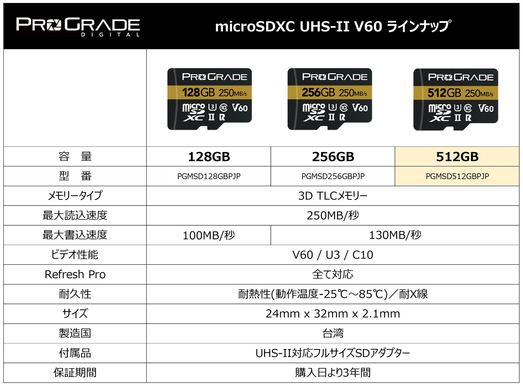 ProGrade Digitalの創業者兼CEOのウェス・ブリュワーは次のように述べています。「近年Nikon Zf, Canon PowerShot V10などmicroSDスロットを持つカメラカテゴリーが増えています。その結果として256GBの需要が劇的に増加したことに注目し、先を見越してmicroSDラインナップに512GBを追加することを決断しました」「アクションカム、360°カメラ、ドローンなど含め、大量に高画質な写真や4K+の動画を撮影するお客様に最適な選択肢のひとつとなるでしょう」「プログレードデジタルは、今後も最高品質のプロフェッショナルグレードのメモリーカードとワークフローソリューションを提供するという使命を実現してまいります」