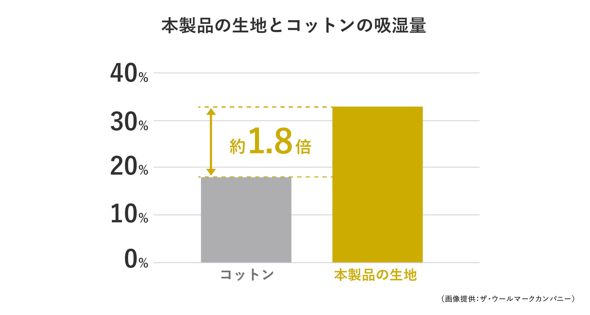ー 吸湿力はコットンの2倍、ポリエステルの30倍