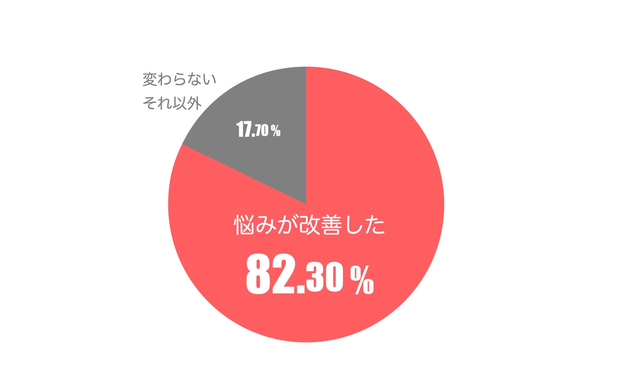 - 肌悩みを抱える人のうち82.30%の人が本インナーの着用で「悩みが改善した」と回答