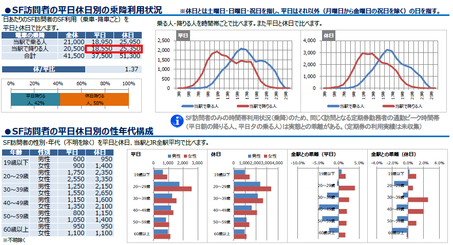 【駅カルテの例:駅ごとのSuica 利用者数を時間帯別・性別・年代別に表示】