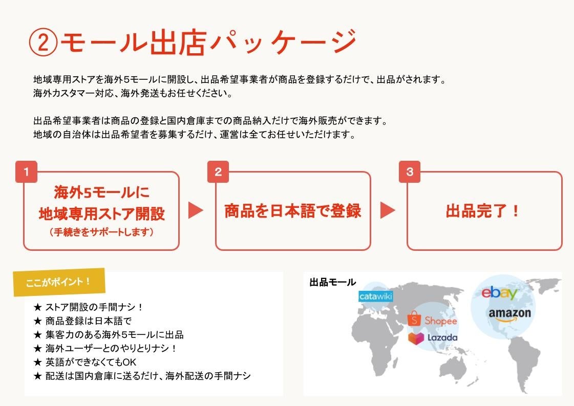 そんな不安を、一社だけではなく地域単位、中小企業などの組合単位で取り組み、費用や人材不足などを補い運用していけるサービスがこの「越境ECパック」です。