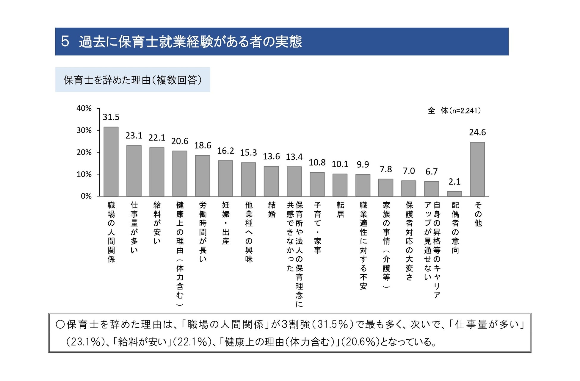 東京都福祉保健局の調査では、保育士の離職理由として「職場の人間関係」が最も多く報告されています。これに加え、業務量や給与、勤務時間といった労働条件のミスマッチも大きな要因です。こうした早期離職を防ぐためには、採用の段階で園と求職者が互いの理念や実態を深く理解し合い、納得感を持って入職することが不可欠といえます。