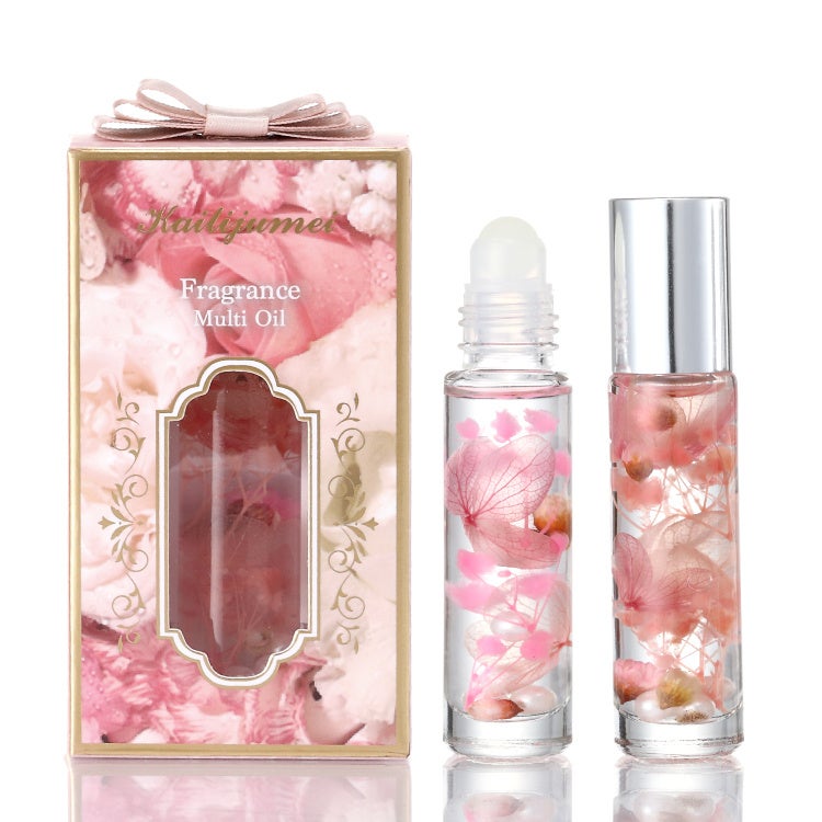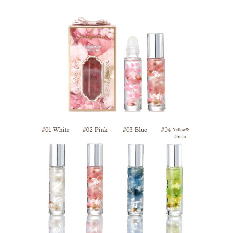 本物の花とコットンパールが入った、まるでハーバリウムのような見た目の香りつきマルチオイルミニ。小さめのカバンにも入る、持ち運びに便利なミニサイズで、いつでもどこでも気軽に保湿ケアができます。ネイルや指先など、気になる所にピンポイントで塗布できるロールオンタイプです。