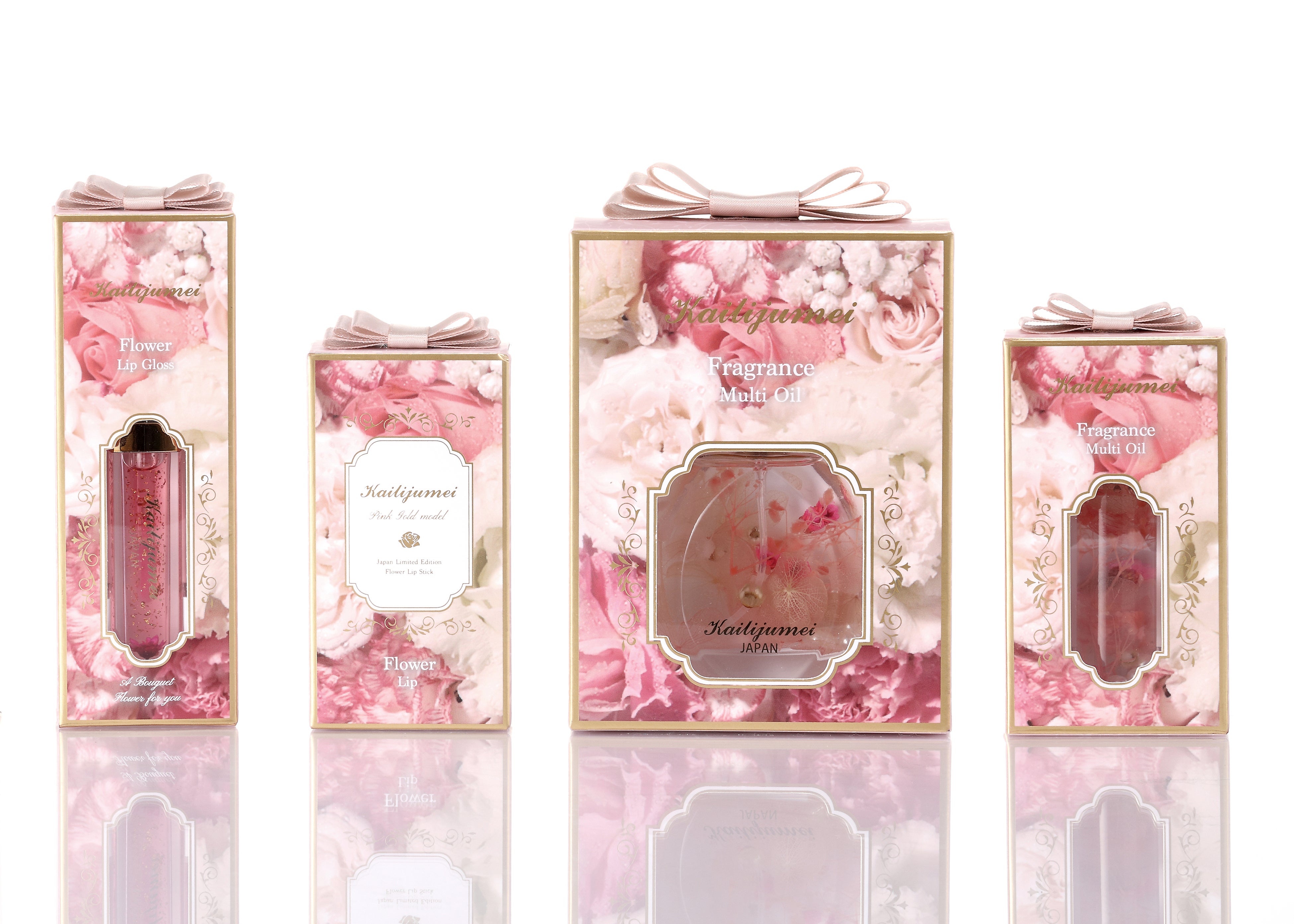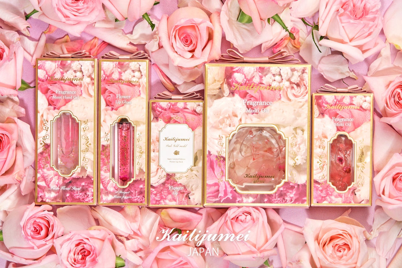 また「Kailijumei フラワーリップ ピンクゴールドモデル<フラワーブルームシリーズ>」は、植物由来の天然保湿成分(ローズヒップ油、ツバキ油)とトコフェロール(ビタミンE/保湿)を配合した、高品質な日本限定のモデルです。