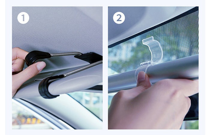 設置も簡単!サンバイザーに取付具をひっかけて、サンシェードを取り付ければ設置完了!